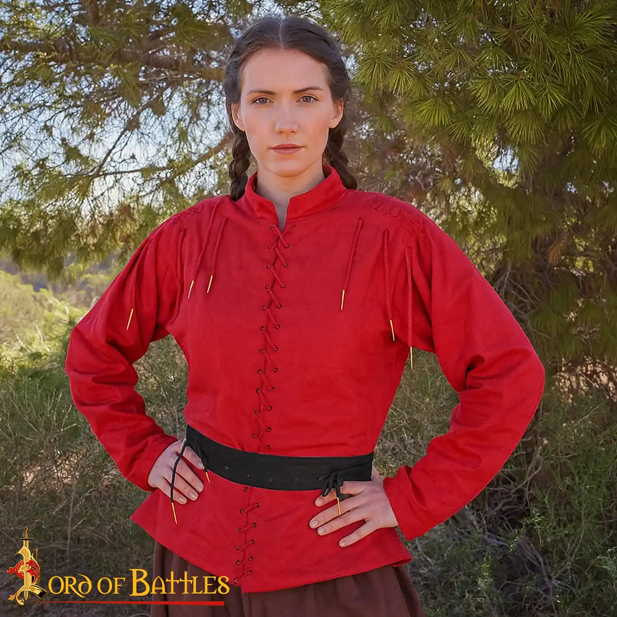 Adjustable Fit with Arming Points: Designed for customization, the belt has canvas eyelets along its length, for tying options for a personalized fit. The eyelets are for long arming cords with brass aiglets, making the attachment straightforward and reliable. The arming accords are not included, for personalisation you can buy your own choice of cords.