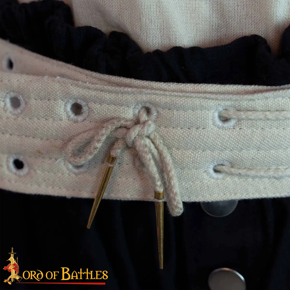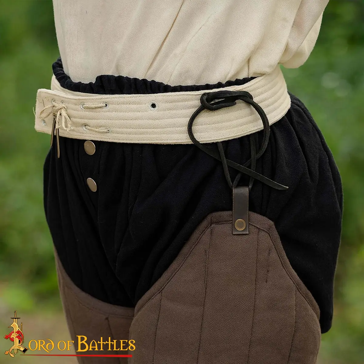 Durable Canvas Cotton with Comfortable Padding: Crafted from thick canvas cotton, this medieval arming belt is comfortable for long hours of wear. The padded design helps distribute weight evenly, decreasing pressure points when supporting heavy leg armor. It functions as both a padded belt and as a piece of padded armour layering.