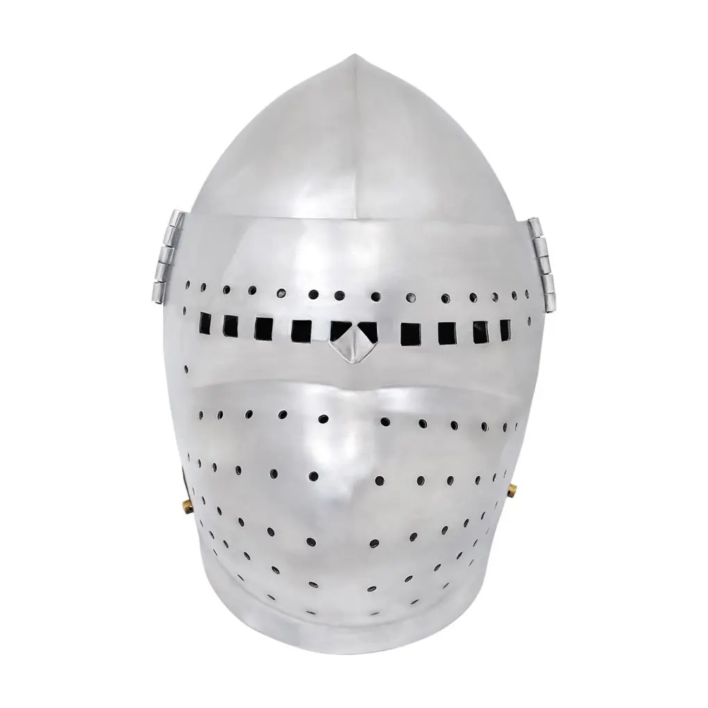 Step into the world of medieval craftsmanship with the 14th Century Full Visor Bascinet Helmet. This exquisite helmet not only embodies the rich history of the medieval era but also serves as a functional piece for LARPing enthusiasts and reenactors. Whether you’re preparing for a theatrical performance or a historical battle reenactment, this bascinet is your perfect ally.