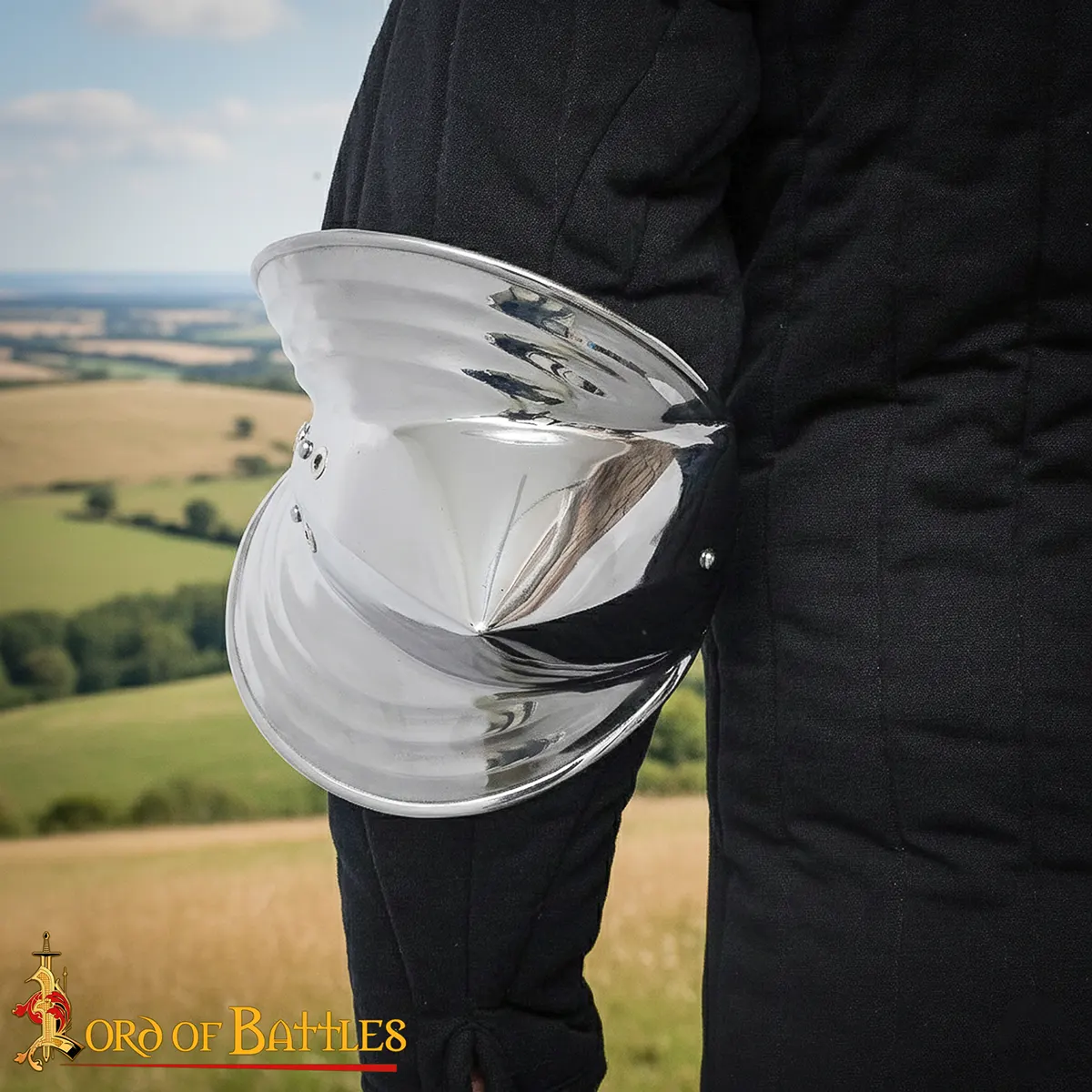 These Elbow cops are a faithful reproduction of 15th-century German elbow protection, to guard the joint with freedom of movement. Hand-forged from durable 16 or 18 gauge mild steel, they are protective and have a historically authentic look.
