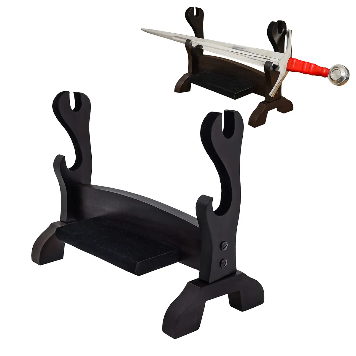 This stand has a 2-tier design, so that you can display two swords at the same time. It works well as a sword stand for collections, decorative setups, or personal display. The compact tabletop design makes it easy to place on desks, shelves, or cabinets, while also acting as a reliable sword holder.
