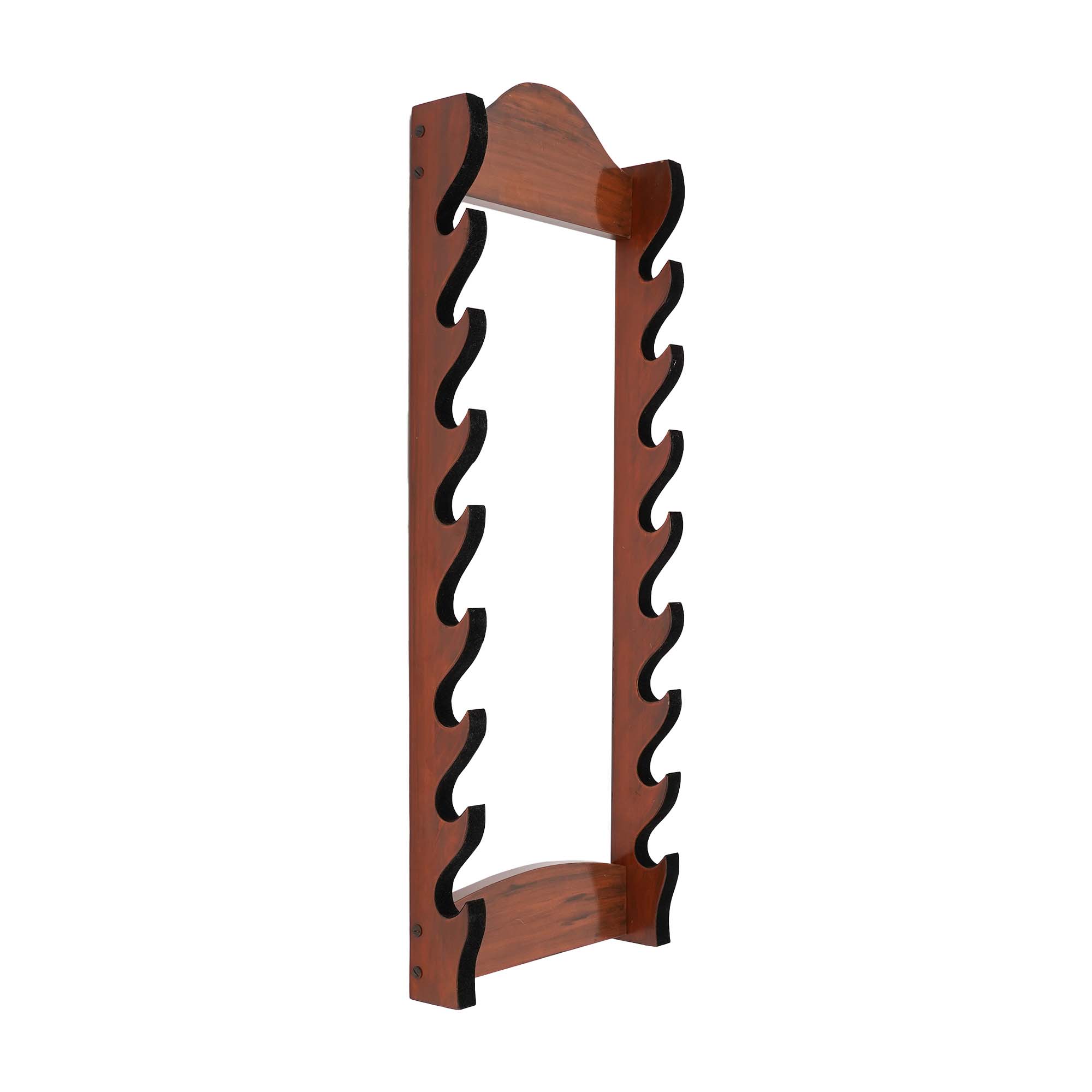 The stand has 8 curved tiers, shaped to cradle swords safely. These smooth curves help keep blades stable while preventing scratches, making it ideal for long-term display. The vertical design allows you to showcase multiple swords in a compact wall space, so that your collection is organised.