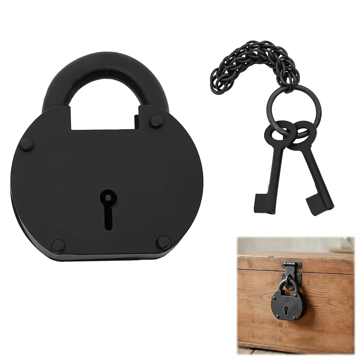 This antique iron padlock is crafted from solid iron, to capture the rugged strength and timeless look of medieval locking mechanisms. With its bold form and matte black finish, it shows the simple and effective designs used in earlier times when security relied on craftsmanship and durability.