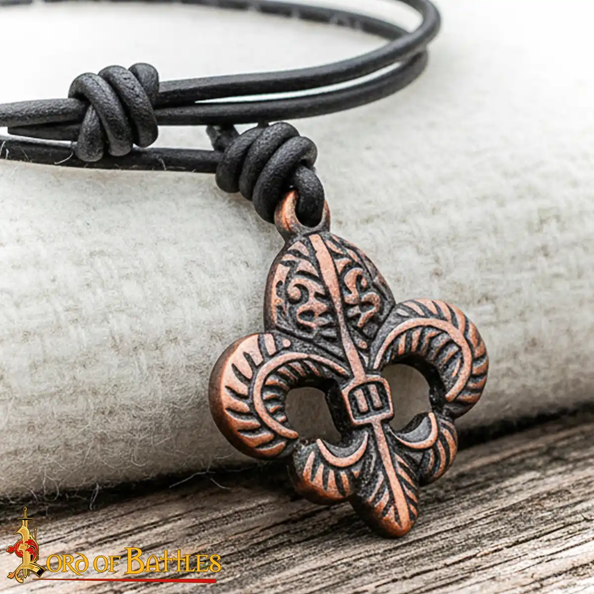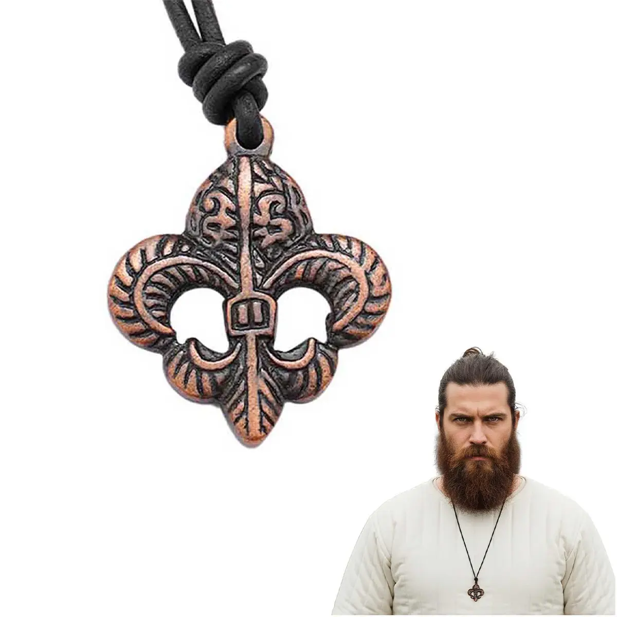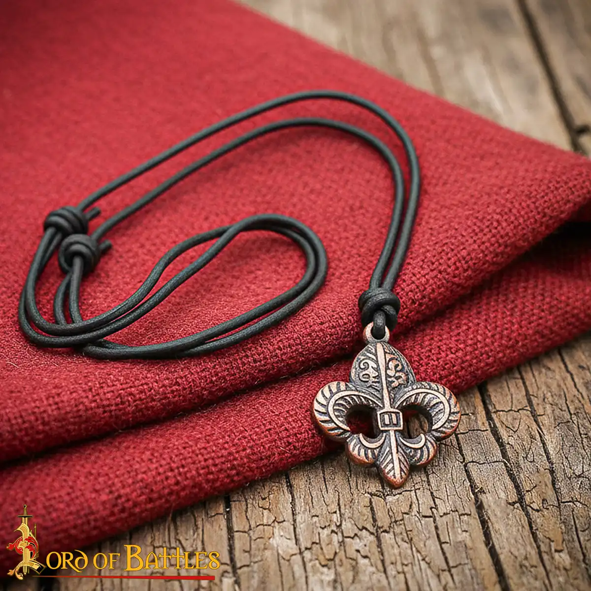 The pendant measures approximately 4.5 cm (1¾ inches) in length, which gives it a noticeable presence without feeling heavy. It works equally well for daily wear, themed outfits or historical attire. The design is inspired by the Fleur-de-Lis, a symbol widely used in medieval Europe and closely linked with honor, heritage, and traditional heraldry.