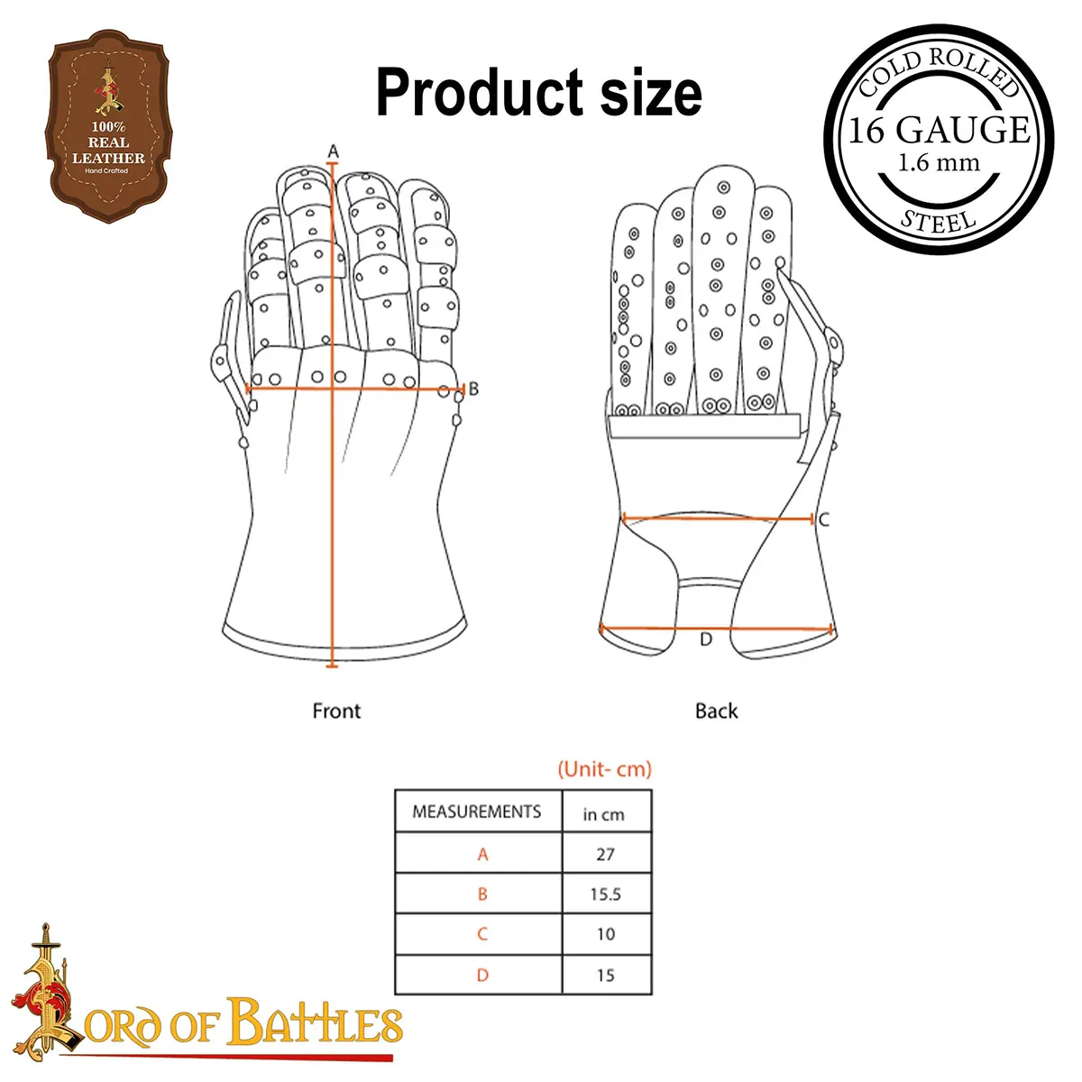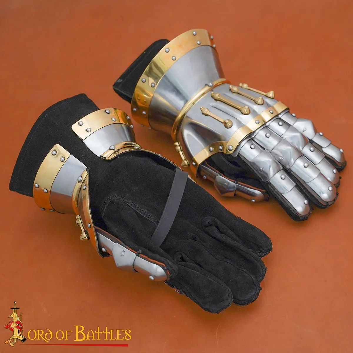 As each pair is hand-forged by skilled armorers, slight variations in rivet placement, brass tone, or finish may occur.