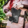 It is spacious without being bulky, this black belt pouch can easily hold small essentials such as coins, keys, tools and even a smart phone. Its thoughtful construction makes it a practical accessory. The pouch works naturally as a leather belt pouch, and its overall shape and styling also give a classic medieval pouch aesthetic.