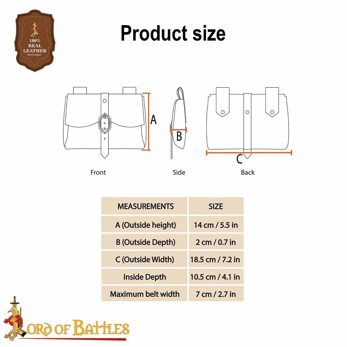 At the back, two leather belt loops are riveted so that the pouch can be worn easily on your belts. This makes it easy for hands-free carrying while traveling, attending events, or moving around. Whether you’re walking through a fair or going about daily tasks, the pouch stays stable. It fits belts up to 7 cm wide.