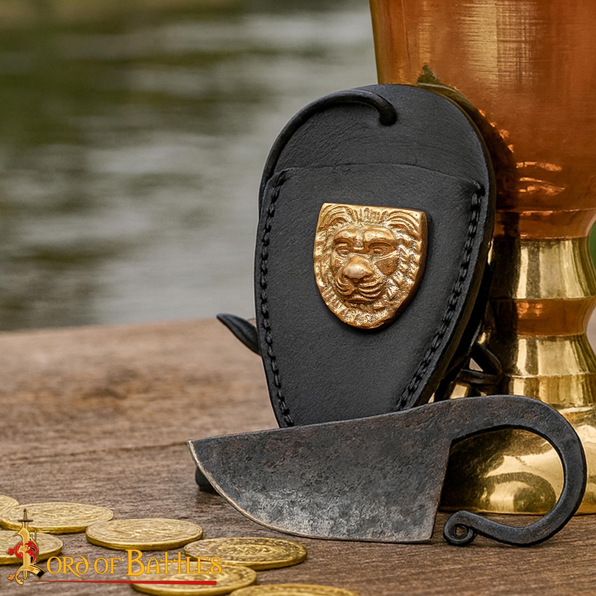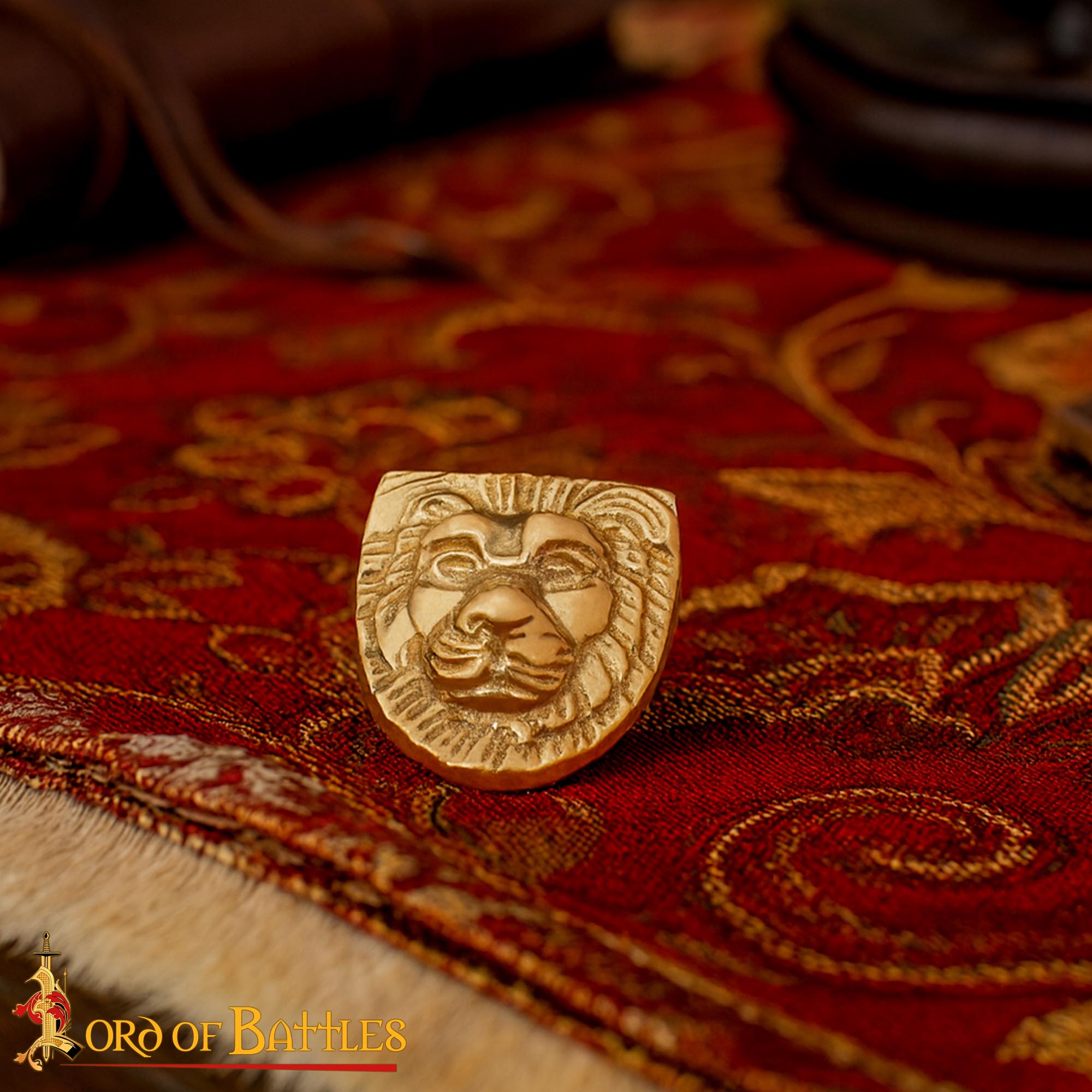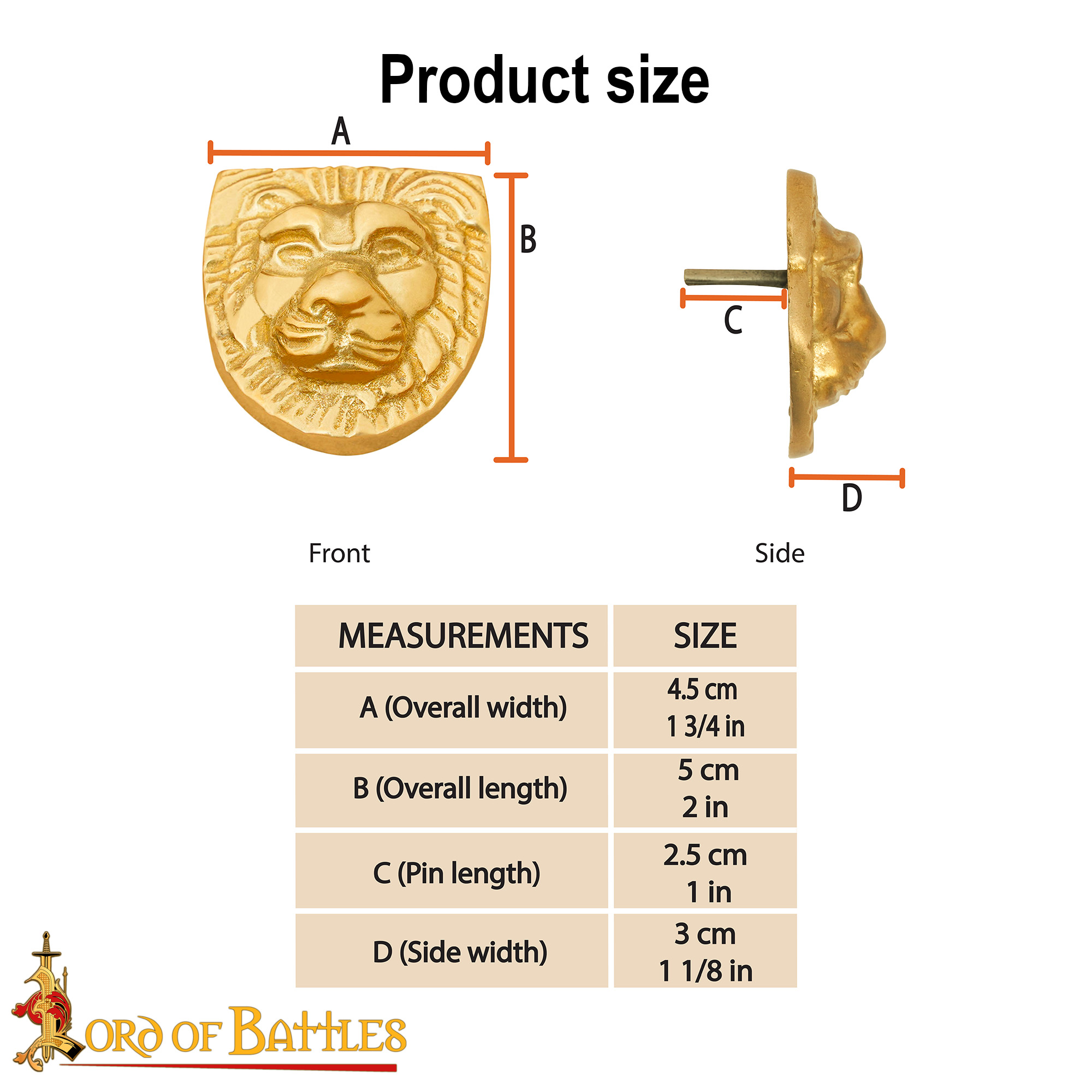 Handcrafted from solid brass, it highlights the fine detail of the lion’s mane and face, giving any armour or clothing an aura of nobility and command. A split pin on the back makes it easy to attach to armour, belts, cloaks, or costumes. Perfect for Greek, Roman, medieval, or fantasy reenactments, this fitting instantly turns ordinary gear into a statement of courage and heroism.