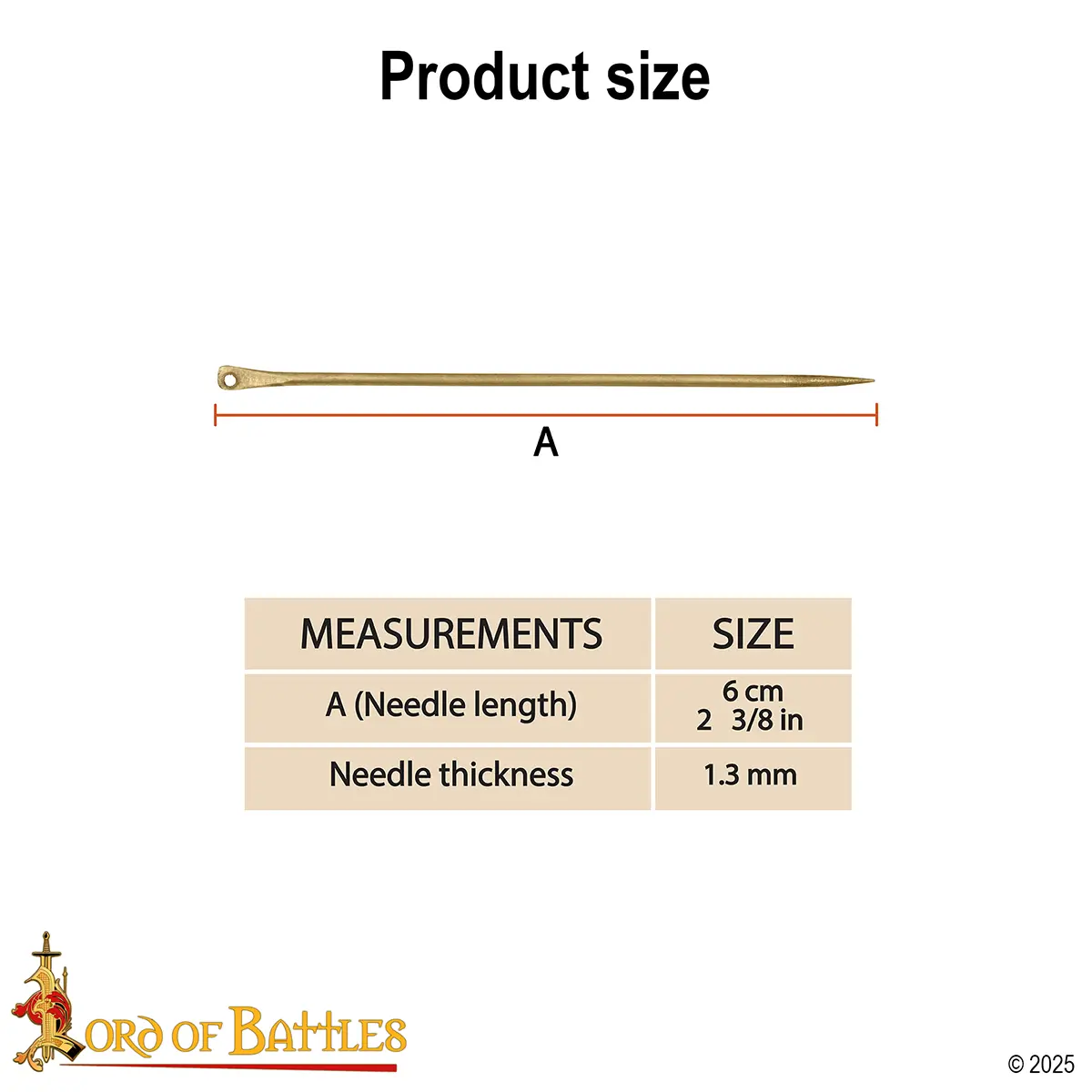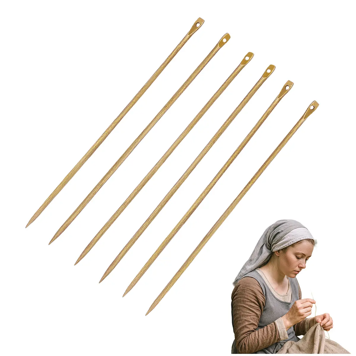 Advantages of Brass: Brass was valued historically for making tools because of its strength and resilience. It does not rust, making it ideal for sewing tools often exposed to moisture, oils and dyes. These medieval sewing needles pieces are resistant to corrosion, maintain their shape under pressure, and glide smoothly through fabric thanks to their naturally slick finish.
