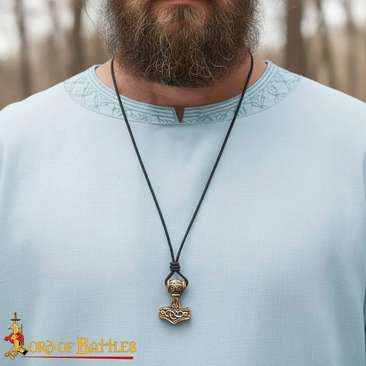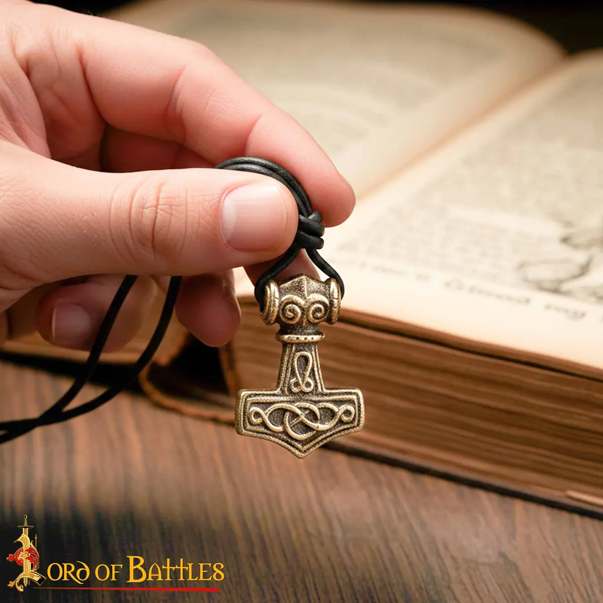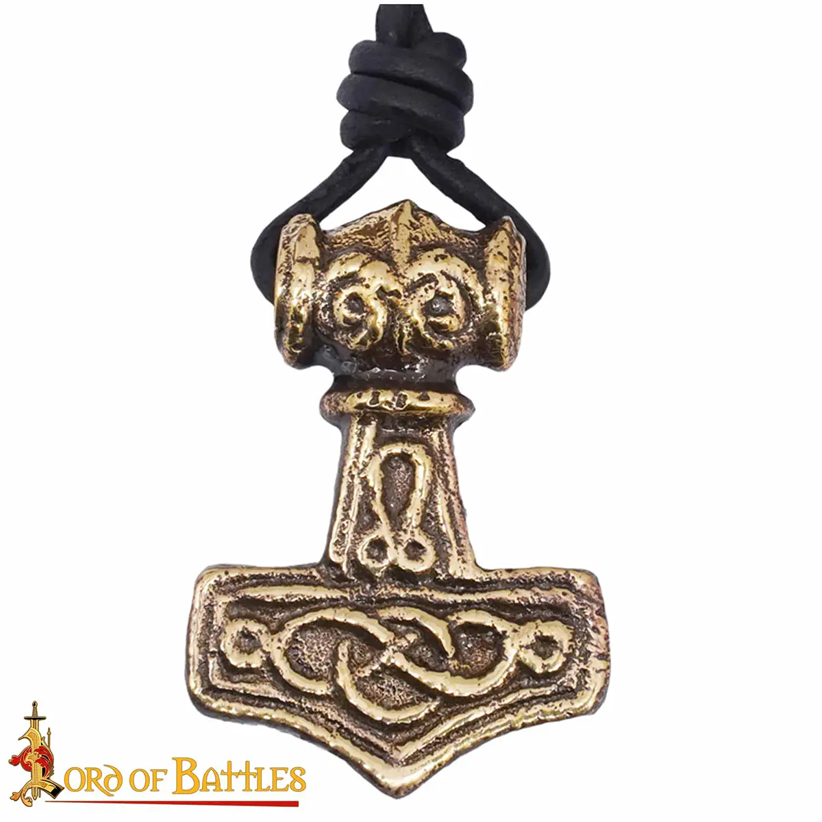 Note: Each Mjolnir Pendant is handcrafted from genuine brass with a leather cord, so small differences in color, finish, or texture may be present.