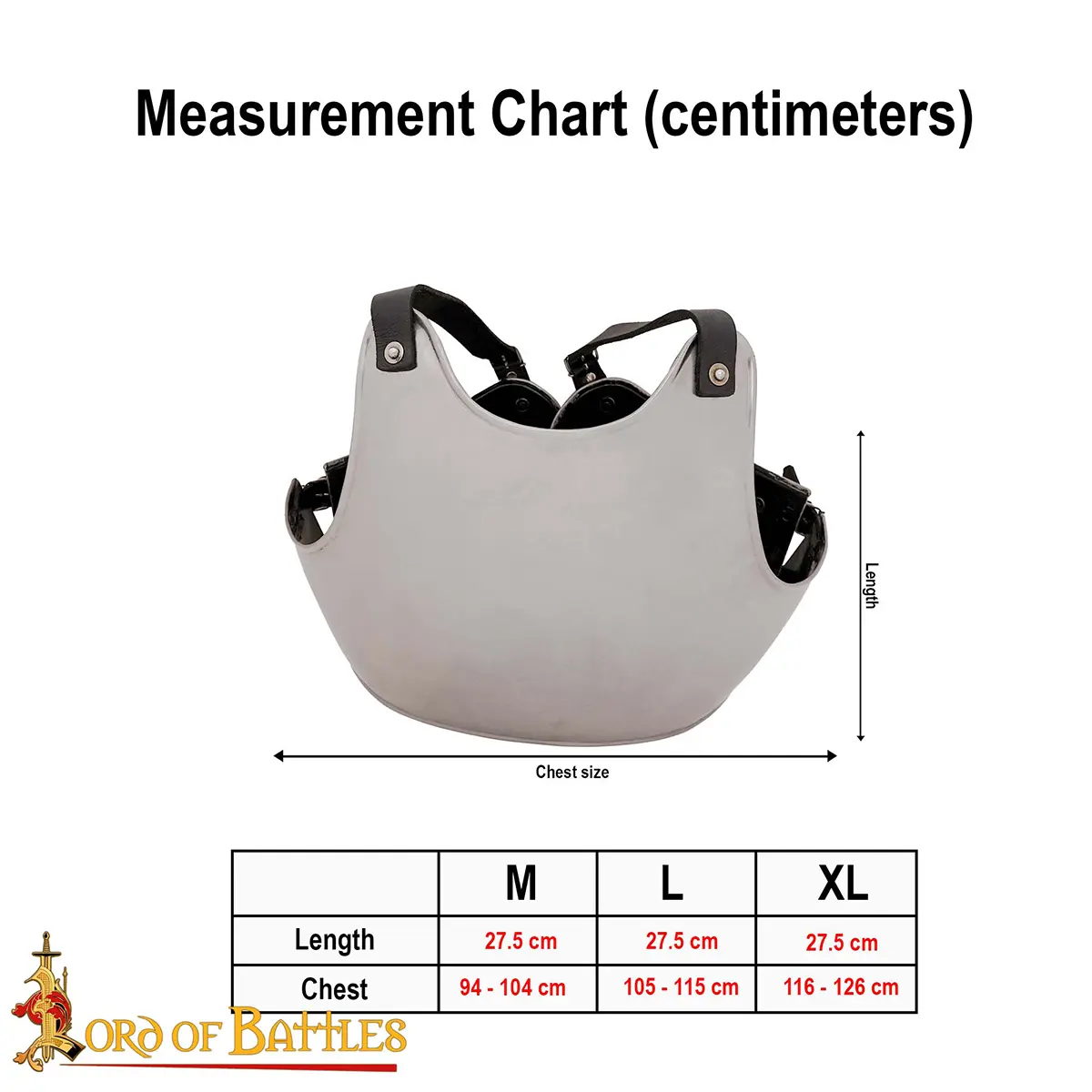 Measuring is crucial! Our breastplate comes in three sizes – medium (chest 94-104cm), large (chest 105-115cm), and extra-large (chest 116-126cm). Ensure you measure yourself properly with a gambeson underneath for the perfect fit, allowing this armor to complement your body while providing the protection you need. The multiple genuine leather straps allow for high adjustability, ensuring that it accommodates various body shapes and sizes, providing a tailored fit that stays secure throughout your adventures.
