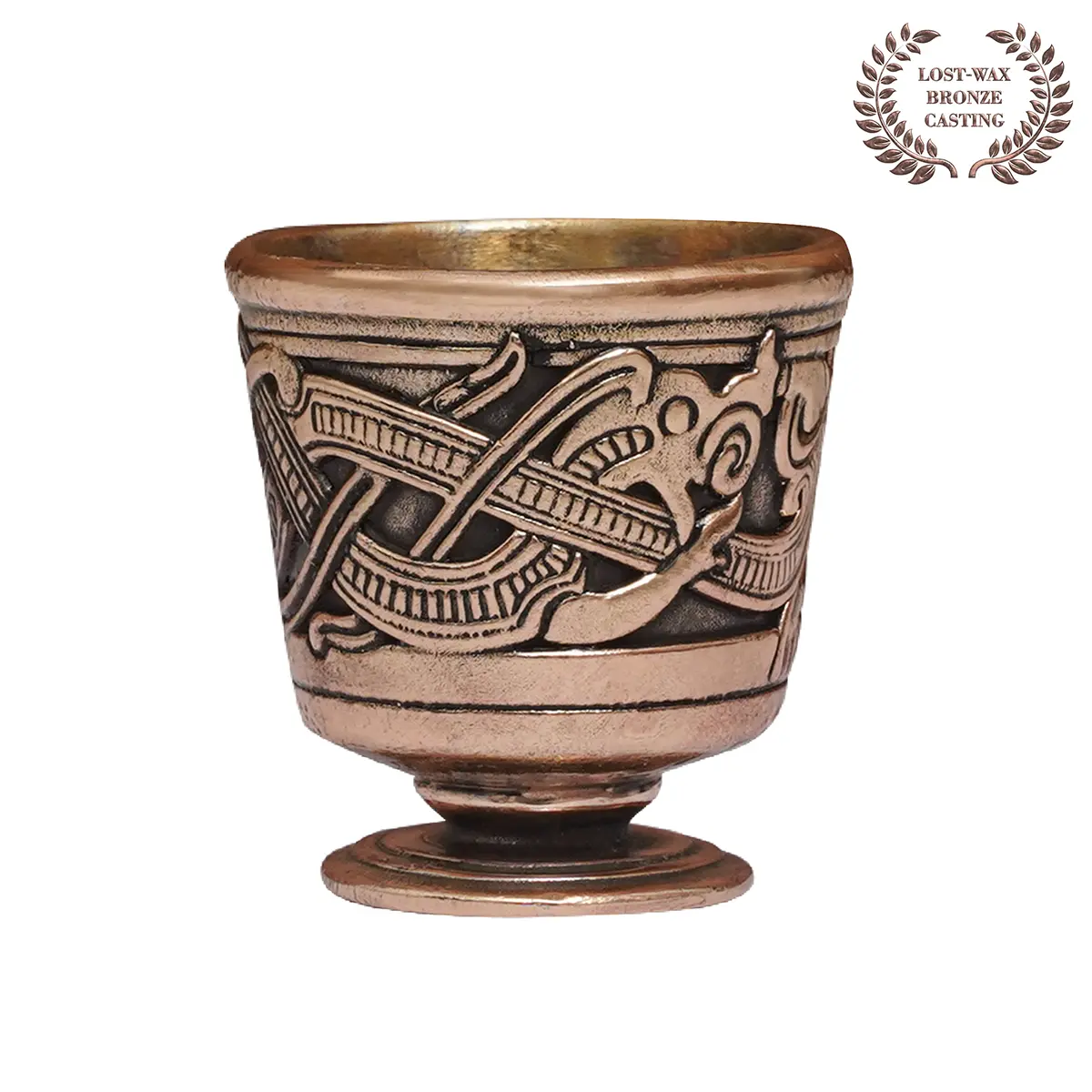 Traditionally cast with the ancient lost-wax (cire perdue) technique, this piece is made by sculpting the original design in wax, encasing it in a mold, and replacing the wax with molten bronze. This process gives intricate surface detailing, depth, and variations that cannot be achieved through machine casting. As a result, each goblet has unique textures and engravings shaped by hand.