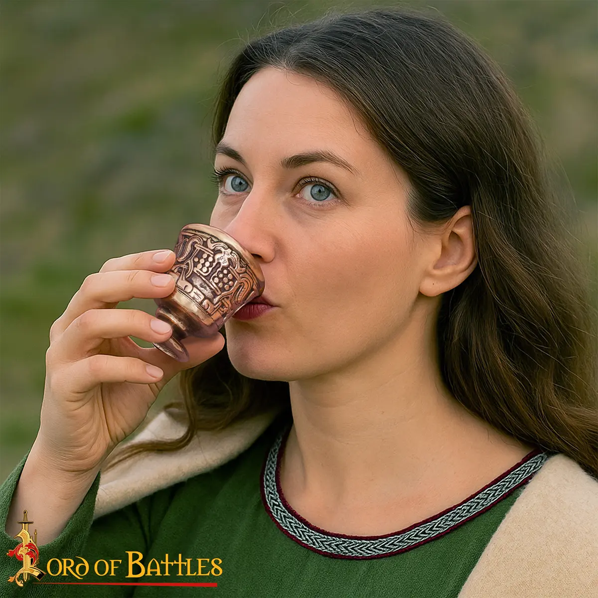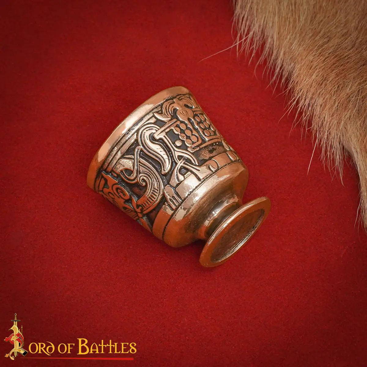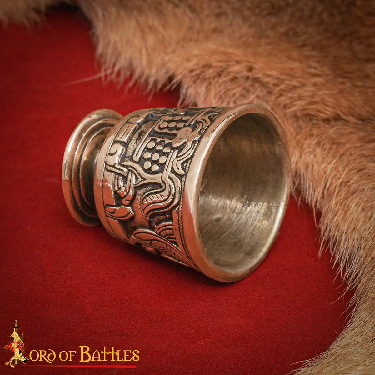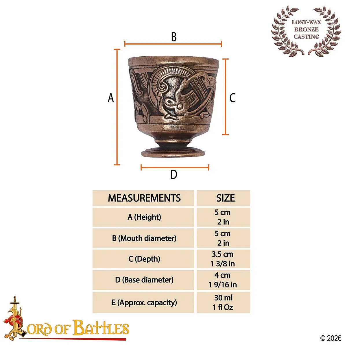 Despite its capacity of approx 30 ml, this Bronze goblet has a strong visual presence. It can be used naturally as a medieval cup, a ceremonial Ritual cup, and a symbolic bronze chalice for altar display. It may also be used simply as a sculptural bronze cup, for its historical inspiration.