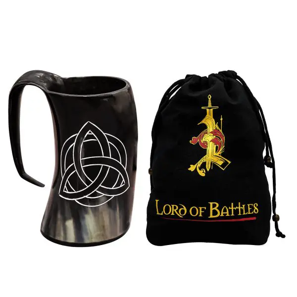 Imagine yourself raising this magnificent tankard in the flickering light of a fire, the unique, natural grain of the horn reflecting the fiery glow. Each mug is meticulously crafted, making it not just a drinking vessel, but a piece of art. The intricate Celtic knot motif engraved on the tankard adds an elegant touch that honors the rich heritage of the Viking Age. You can almost hear the echoes of warriors toasting their triumphs as you clutch this sturdy piece in your hands.