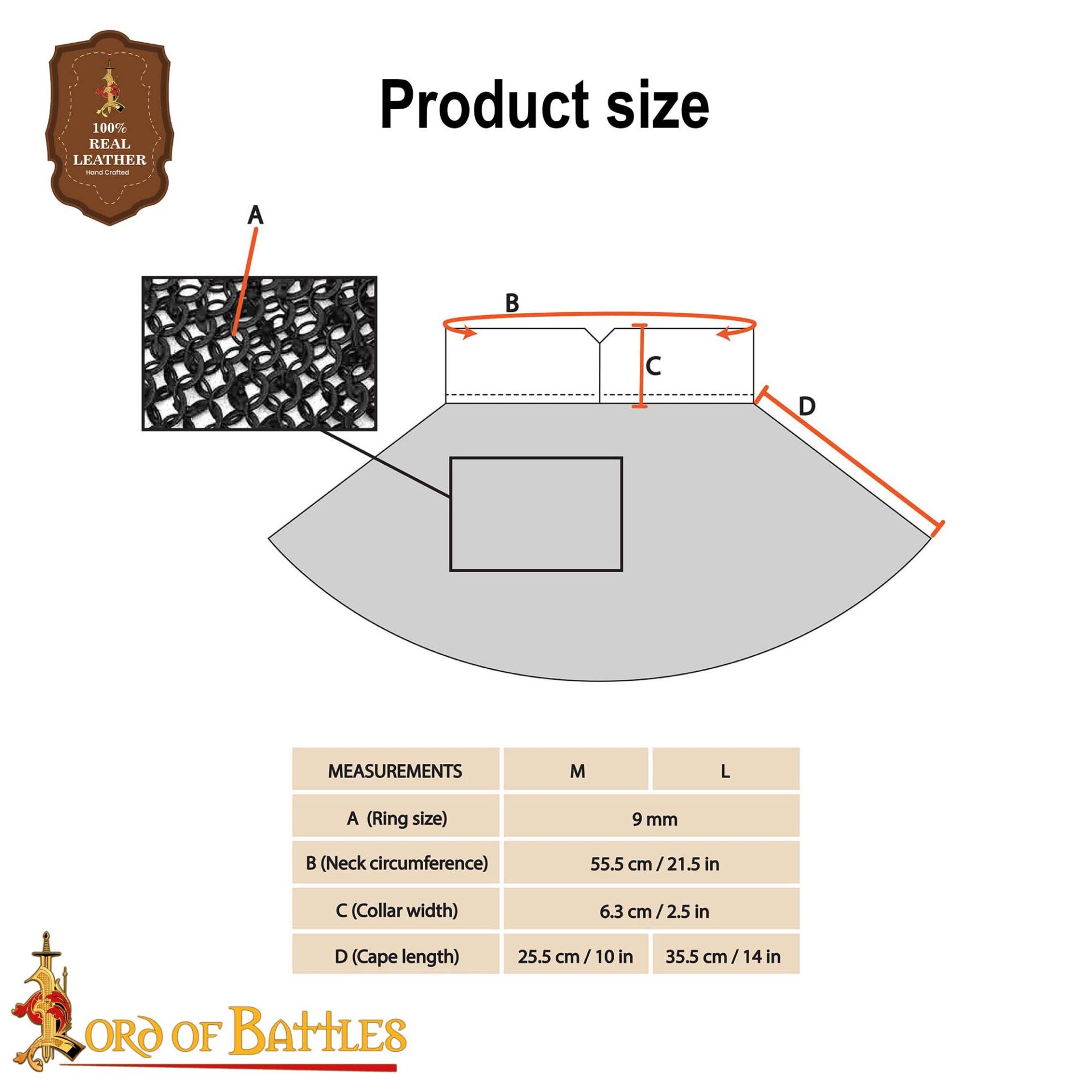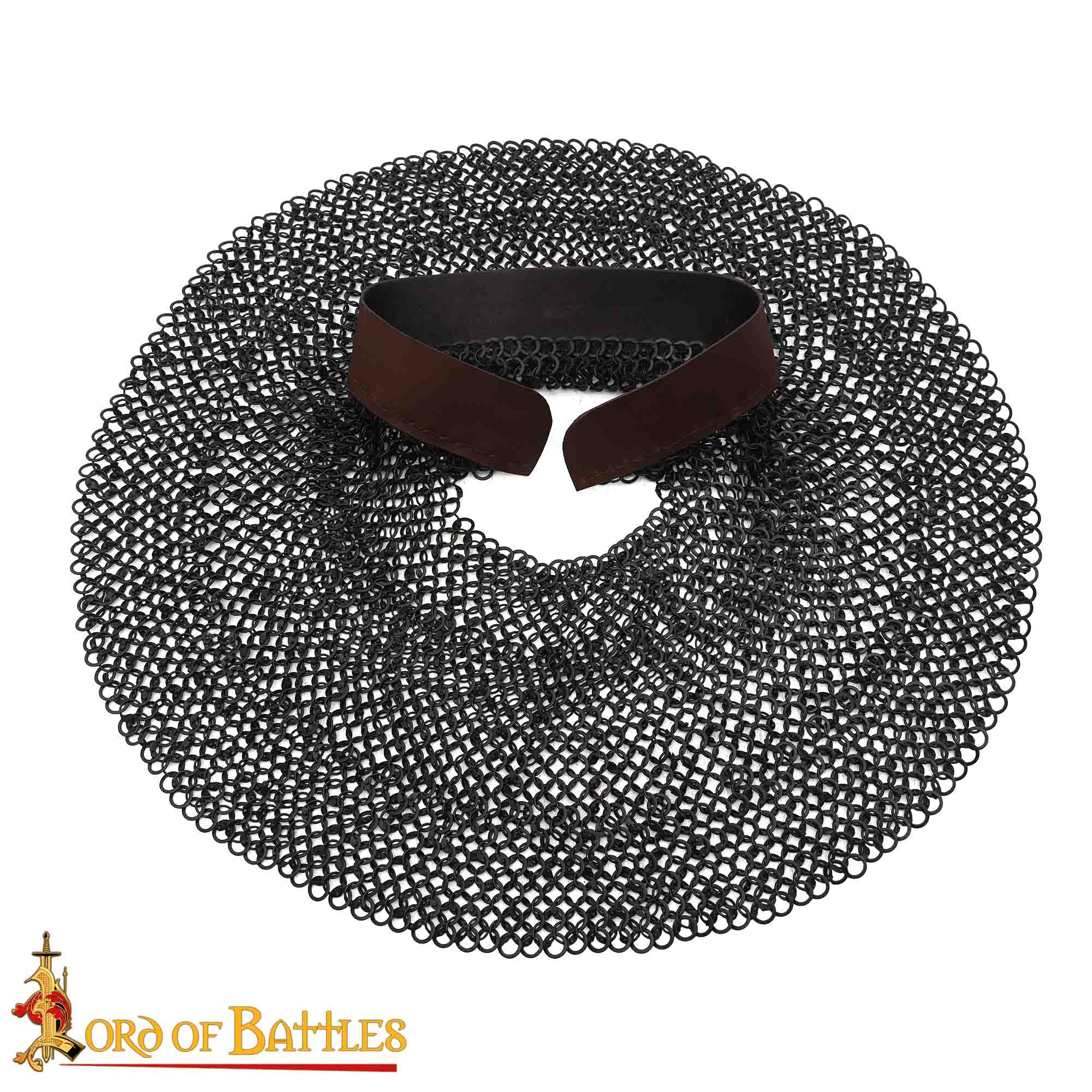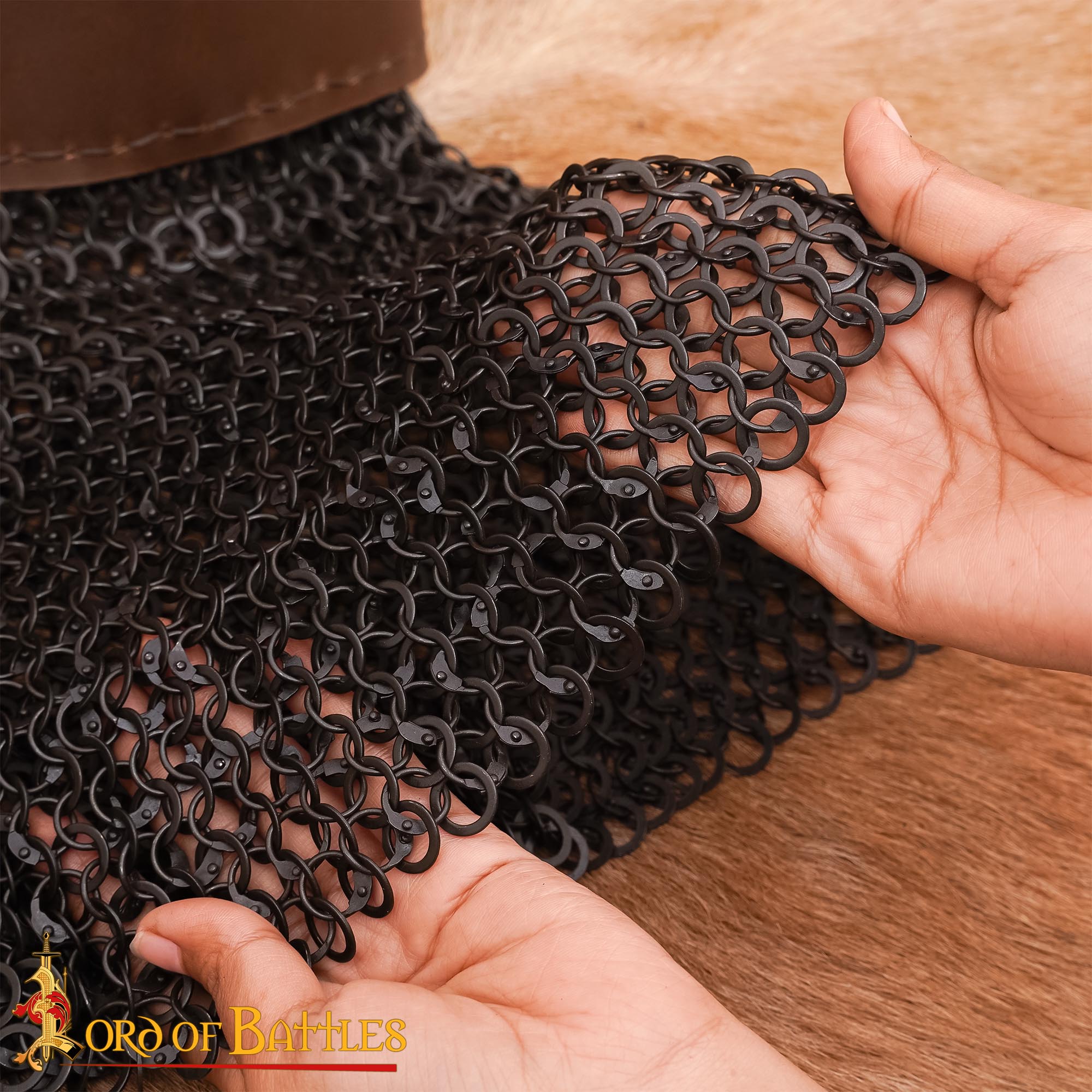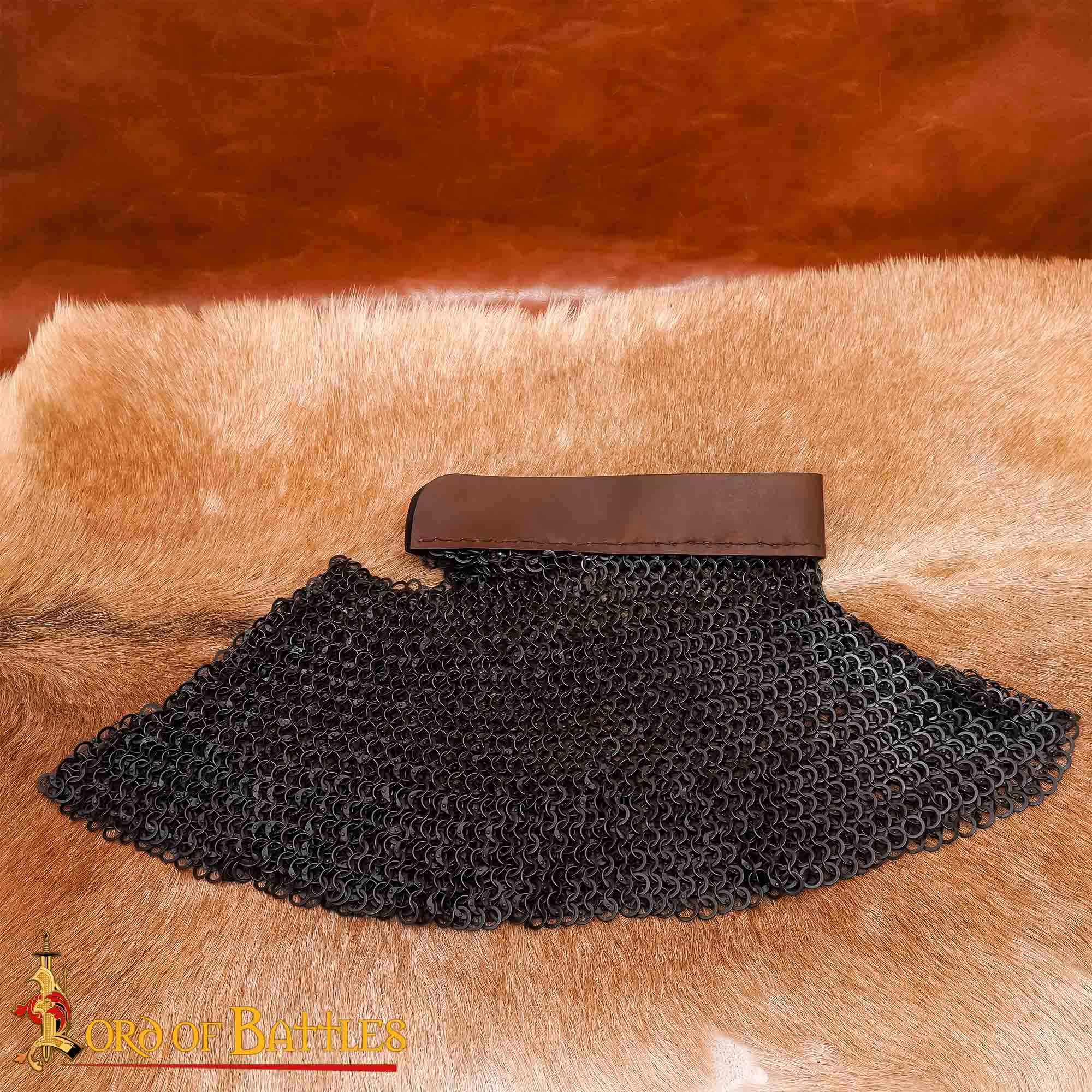 Complete your medieval helmet with our Medieval Aventail with Leather, a historically inspired piece of armor designed for warriors, knights. Constructed from 9mm round riveted rings with alternating flat solid rings, this aventail ensures superior durability and flexibility, offering both protection and authenticity.
