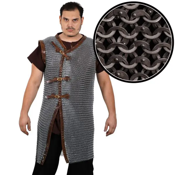 In summary, our Flat Ring Chainmail Byrnie with leather is a beautiful synthesis of functionality, artistry, and historical charm. Embark on your next adventure, knowing you not only look formidable but are also protected by a garment that pays homage to the storied past of warriors who came before you. Elevate your journey and make a statement with this spectacular piece of armor that bridges the past with the present in the most stunning fashion. Get ready to conquer realms and inspire awe!