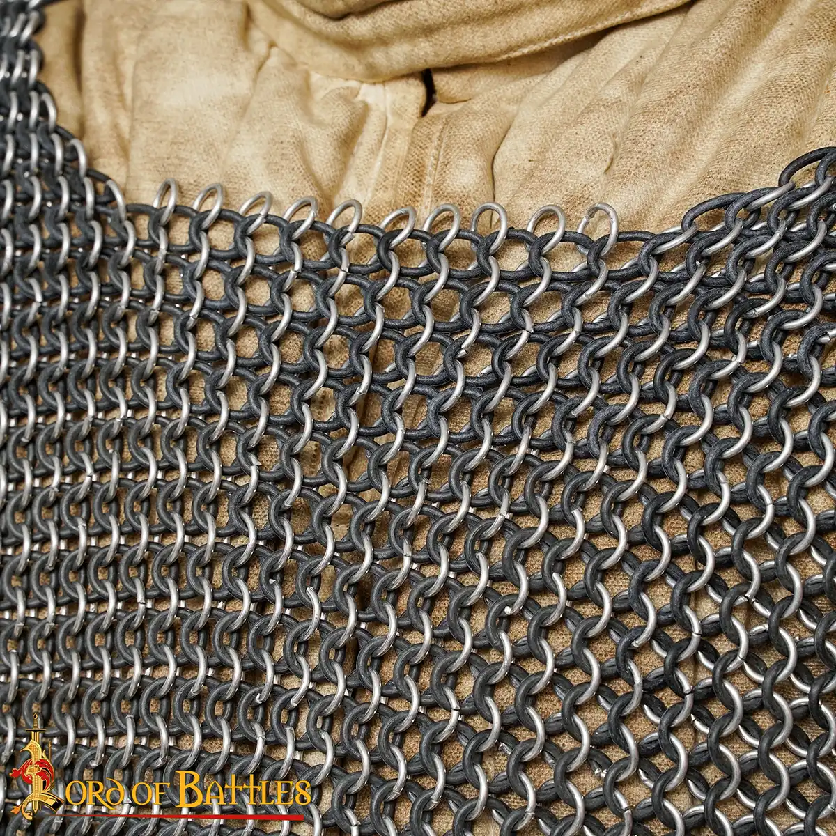 Medieval Chainmail Shirt – Lightweight & Flexible Construction: This chainmail shirt is crafted with 10 mm round aluminium butted rings made from 14 gauge wire, with black rubber washers. This construction gives a lightweight feel that allows long wear without fatigue, ideal for extended use during LARP events, stage performances. The aluminium structure gives the visual look of traditional chainmail armour while being lighter than steel mails.