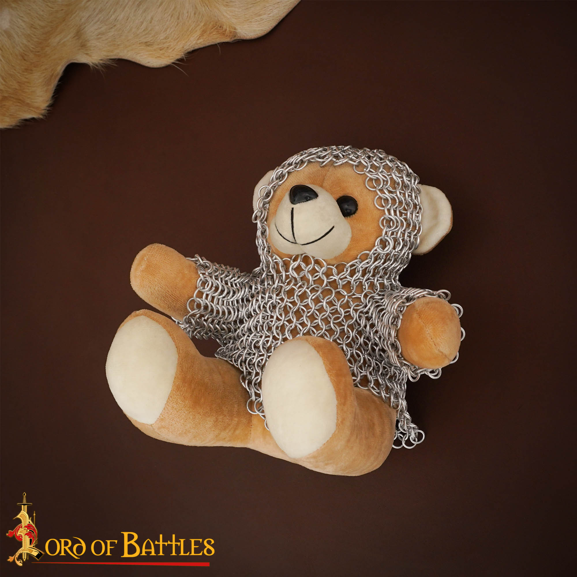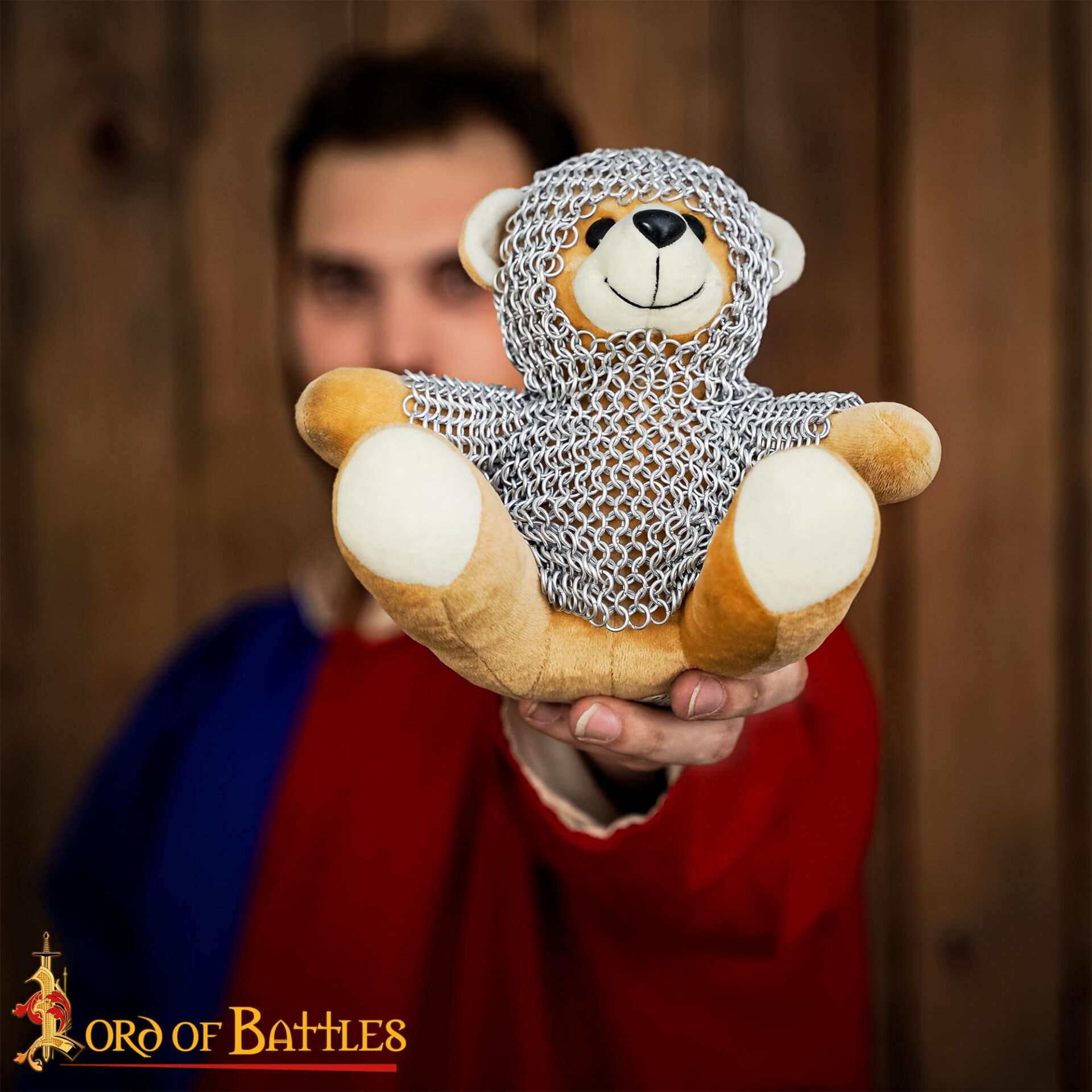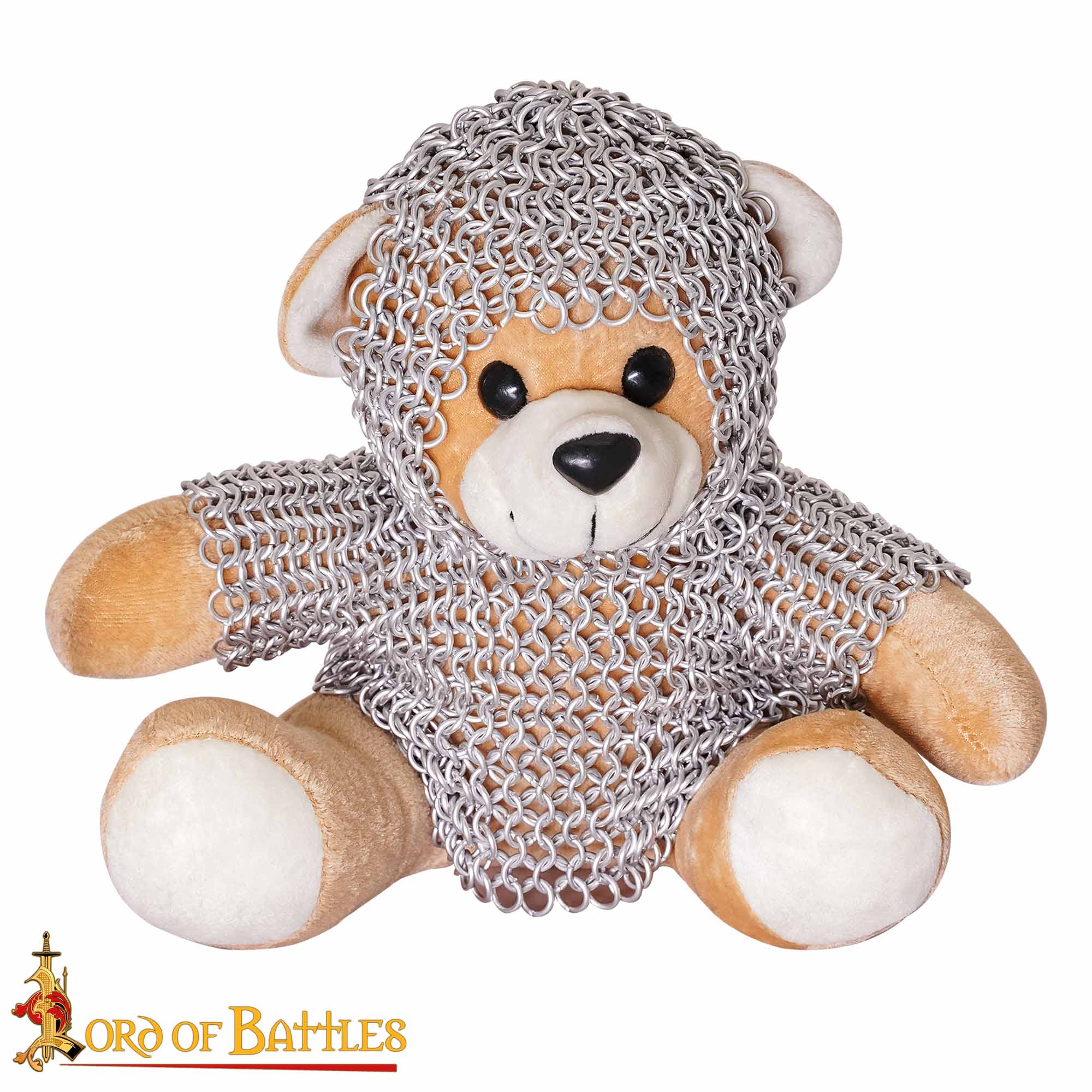 Each bear is carefully outfitted in real anodized aluminium chainmail, meticulously handwoven from 6mm, 17-gauge rings using the classic 4-in-1 pattern, the same weave once relied upon by medieval warriors for protection. The result is a truly distinctive companion that reflects craftsmanship, charm, and storytelling heritage.
