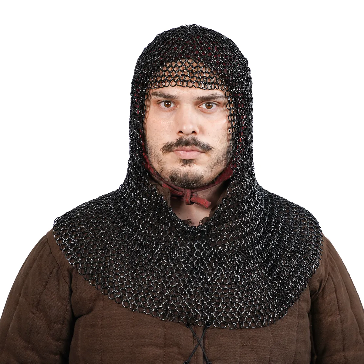 Chainmail Medieval Coif Hood 10mm Butted Round Rings 16 Gauge Mild Steel Historical Armor for LARP, & Film Costumes