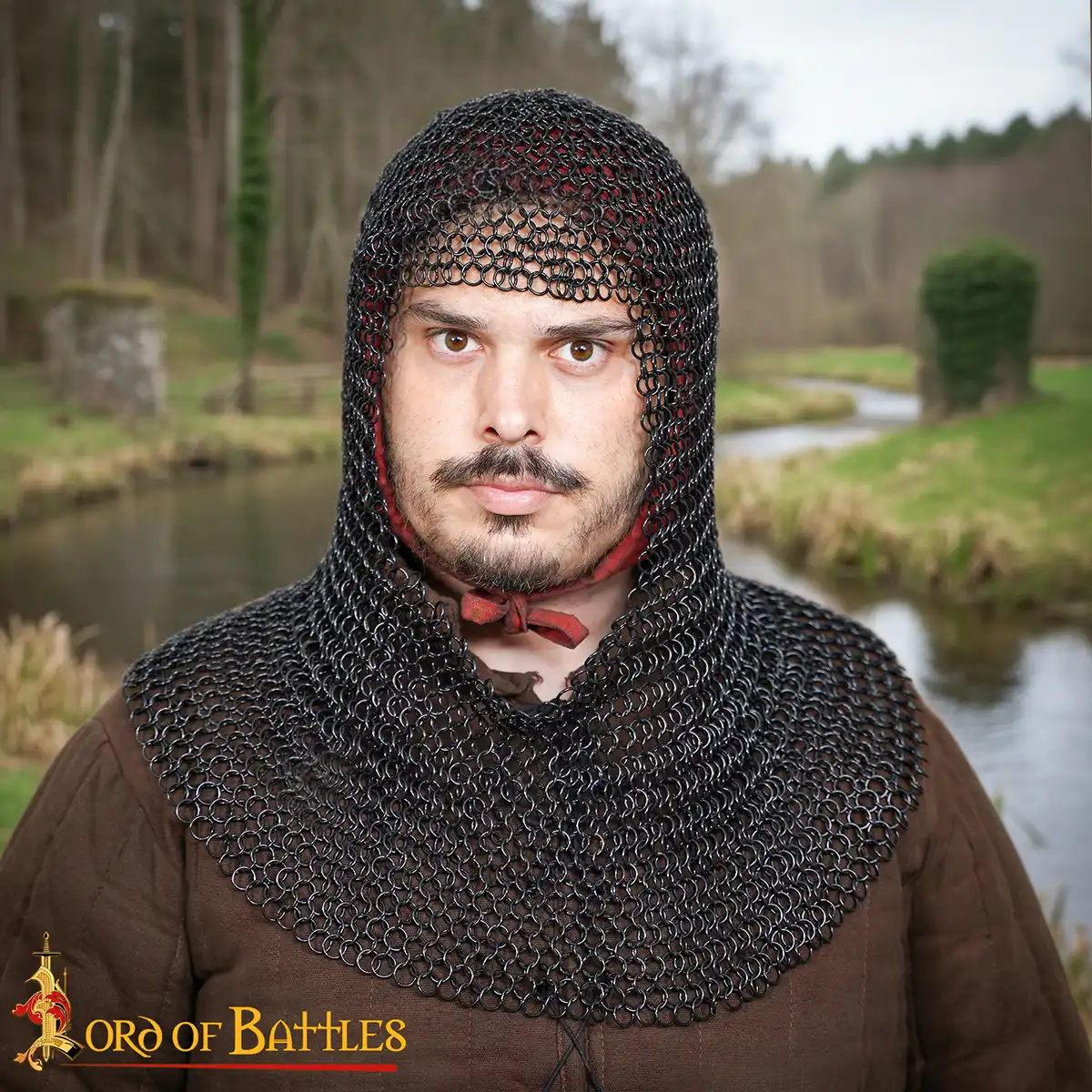 Step into the medieval era with our Chainmail Medieval Coif Hood, a battle-ready piece designed to bring authenticity and durability to your reenactments, LARP battles, cosplay, or film costumes. Made with 16 gauge mild steel and 10mm butted round rings, this coif provides both protection and historical accuracy.
