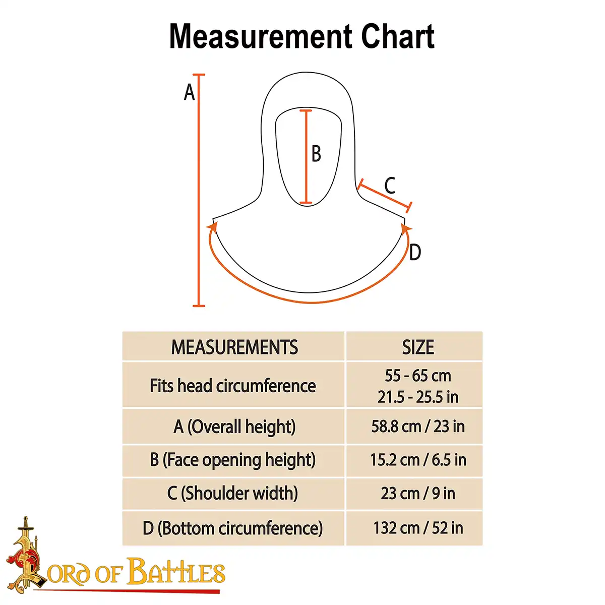 With a comfortable fit designed to accommodate most head sizes, this coif is easy to wear over a padded arming cap or under a helmet. Whether you’re stepping onto the battlefield at a LARP event, performing in a stage production, or enhancing your medieval collection, this coif hood is the ideal choice.