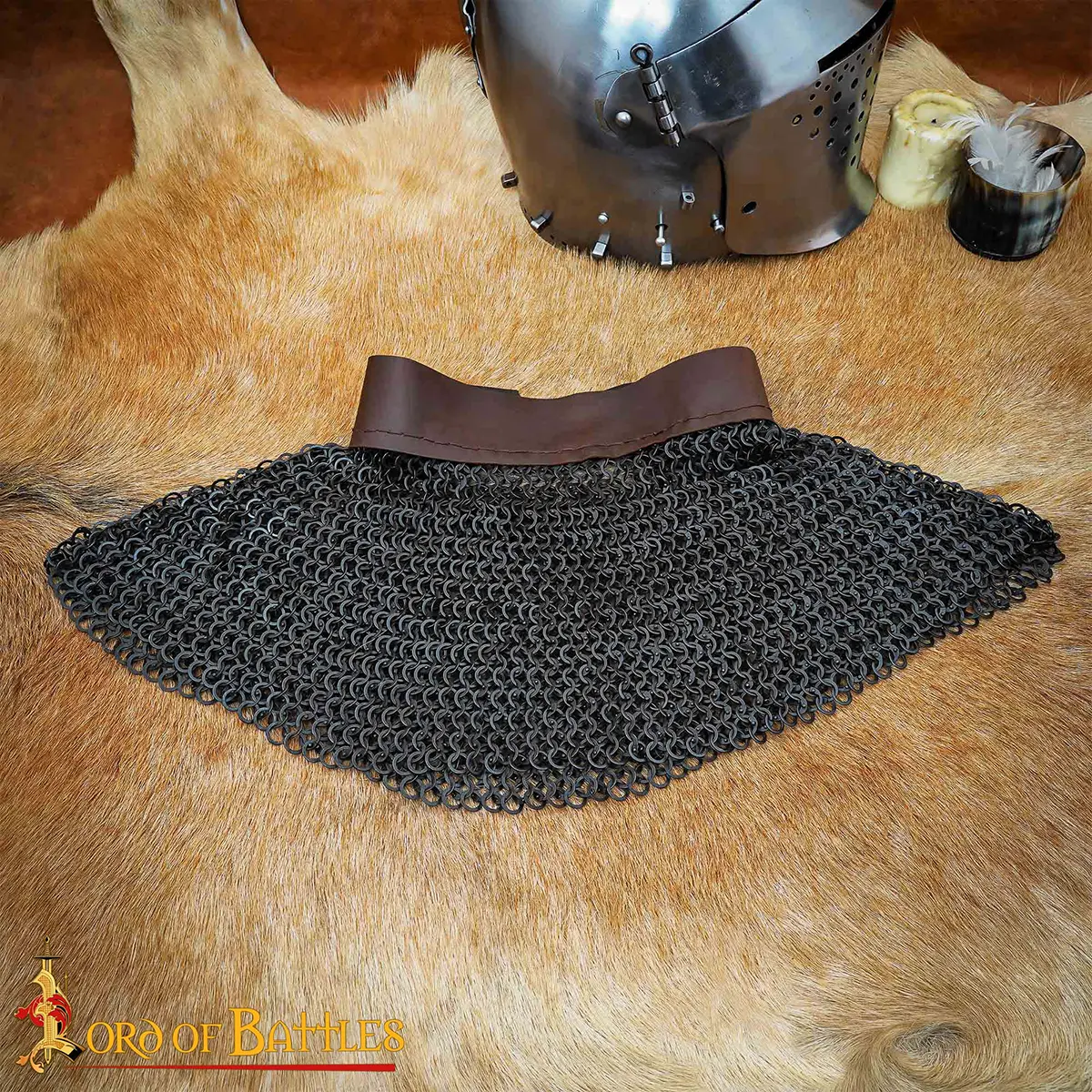 Equip yourself like a medieval warrior with our Chainmail Gorget Standard, a handcrafted piece of armor designed to safeguard the neck, throat, and shoulders. Made with 10mm butted rings from 16 gauge mild steel, this gorget offers both flexibility and durability, making it an excellent choice for  LARP battles, and theatrical use.