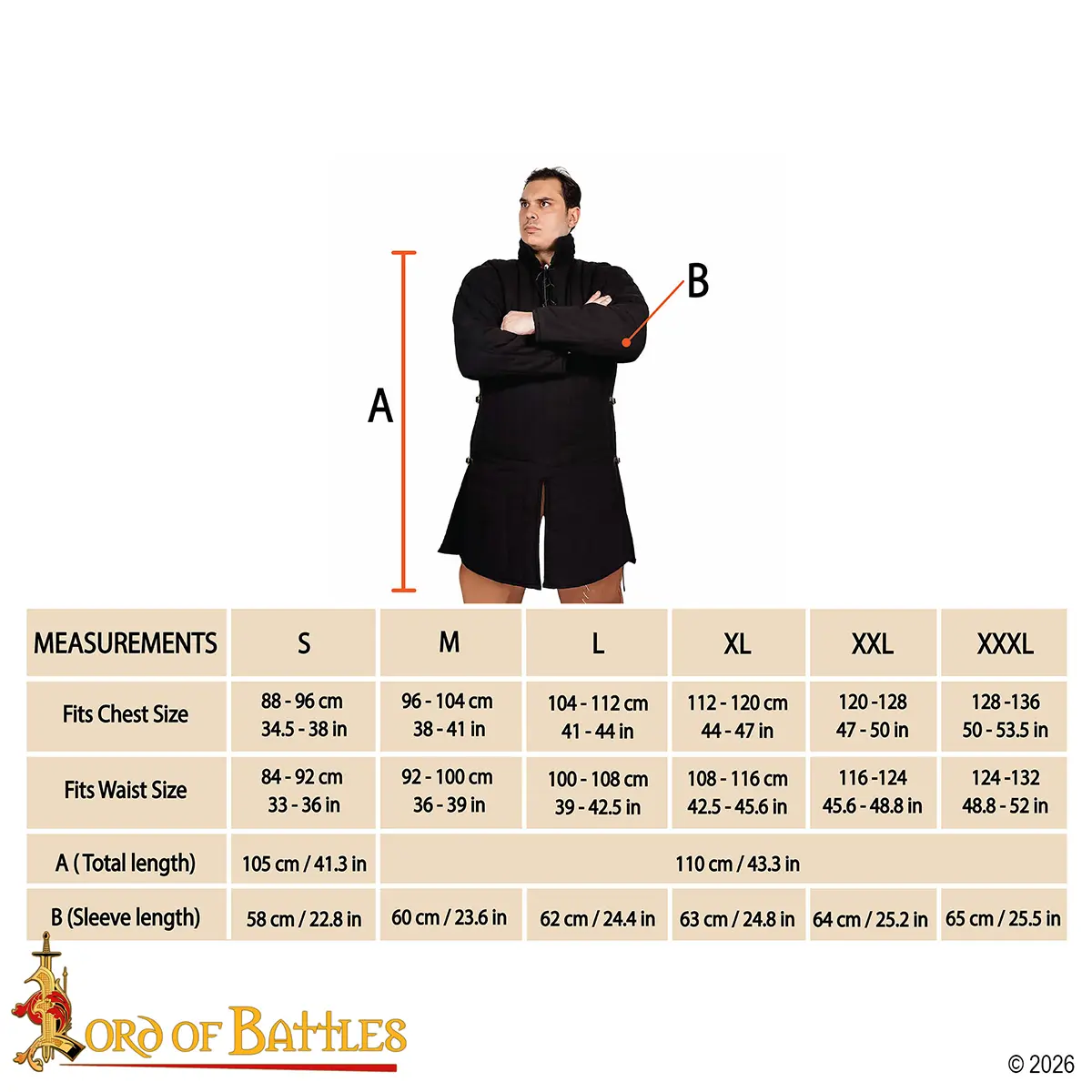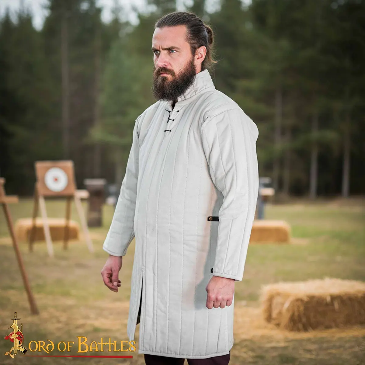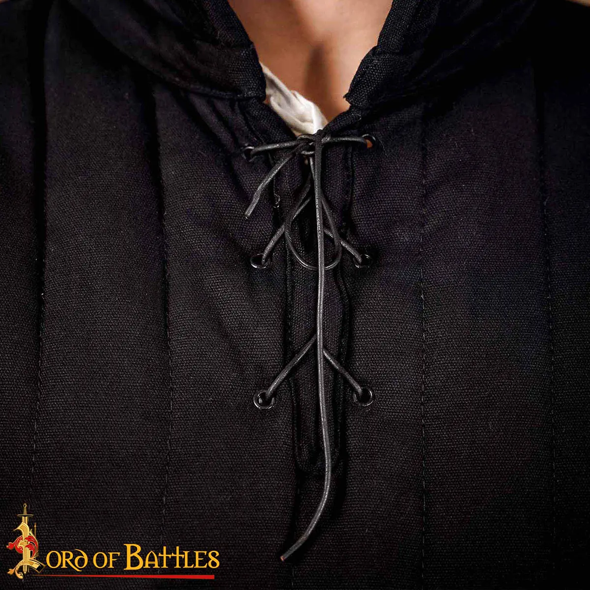The Medieval Cotton Gambeson (Type 3) is a faithful reproduction of the padded jackets worn by warriors of the 14th–15th centuries. Historically, this type of cloth armor acted as an independent protection in lighter combat and as the essential foundation beneath chainmail or plate.