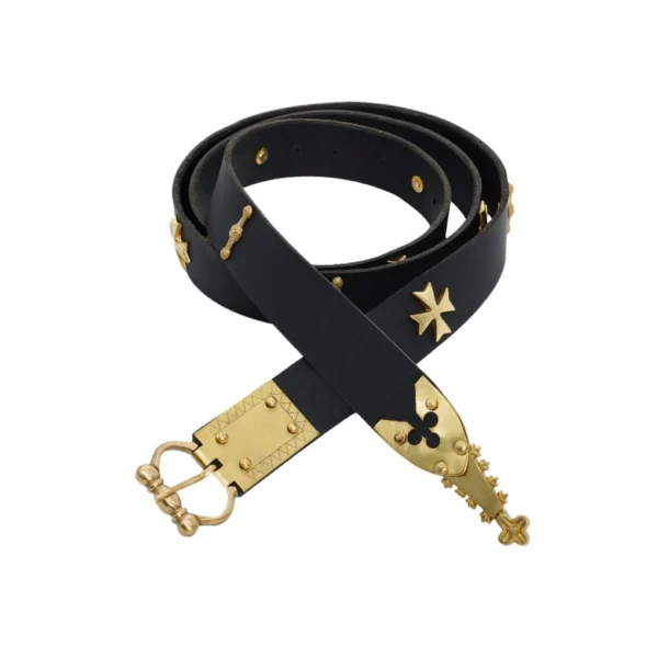 What truly elevates this belt is the intricate solid brass details. Our artisans have designed a remarkable Trefoil buckle and chape that not only reflect the craftsmanship of the past but also present an air of nobility. The gleaming brass catches the light, shining brilliantly against the dark leather, showcasing a harmony of materials that reflects both strength and elegance. The ornate Templar mounts add a layer of historical significance, connecting you with centuries of tradition and artistry.