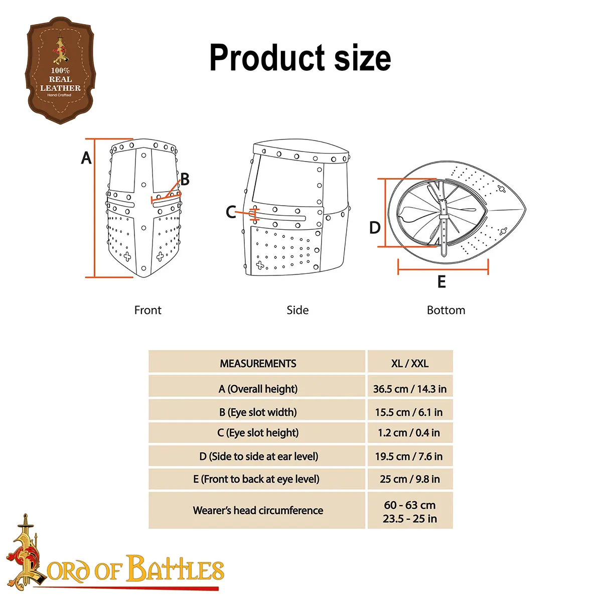 Perfect for display, costume armor, or live events, this Crusader helm carries with it the presence and legacy of medieval knighthood.
