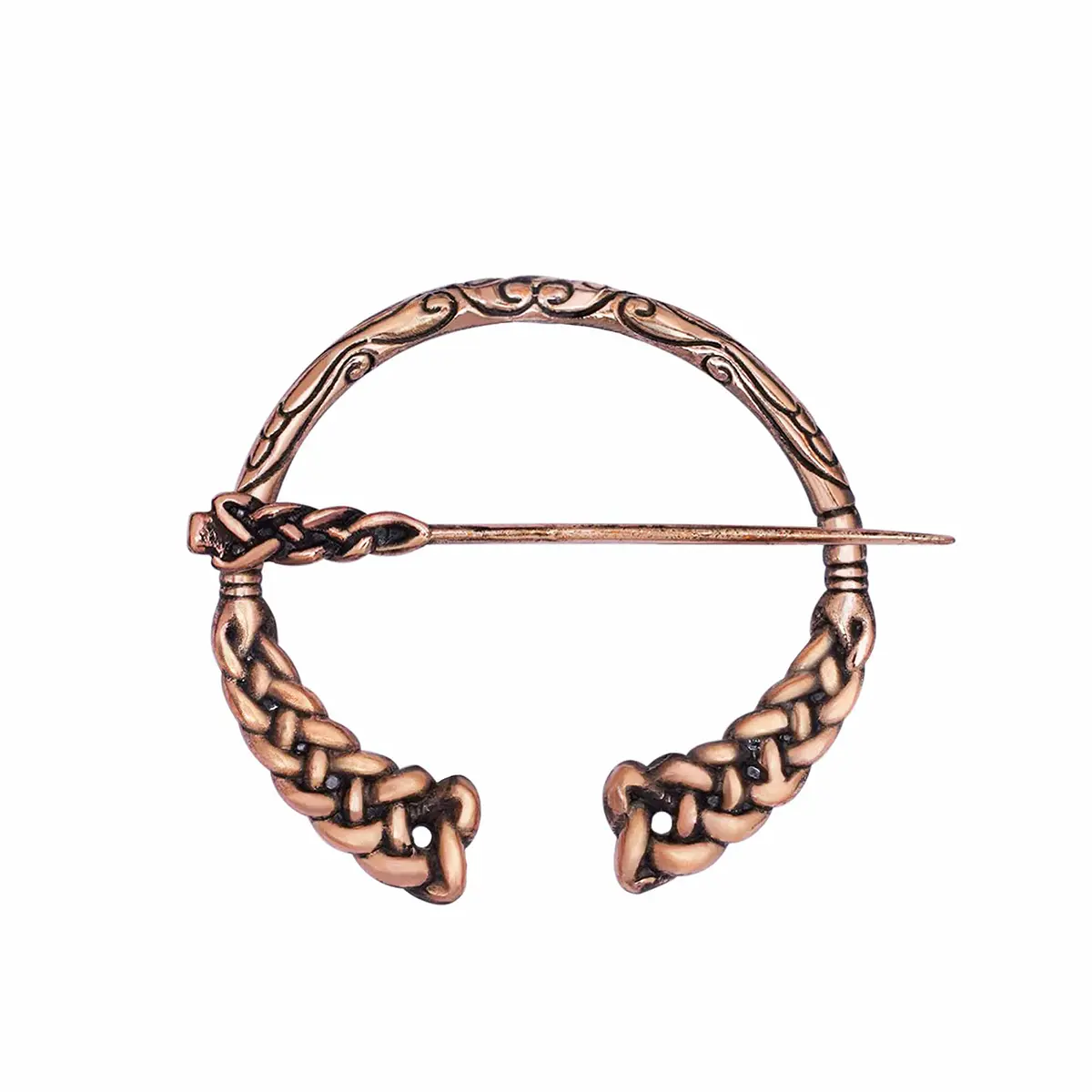 This Viking Bronze Penannular Brooch is a faithful reproduction of brooches discovered in Scandinavian hoards and burial sites dating from the 9th to 11th centuries. In the Viking Age, before buttons became widespread, brooches like this played a vital role in fastening cloaks, tunics, and heavy woolen garments, making them essential items of both practicality and personal identity.