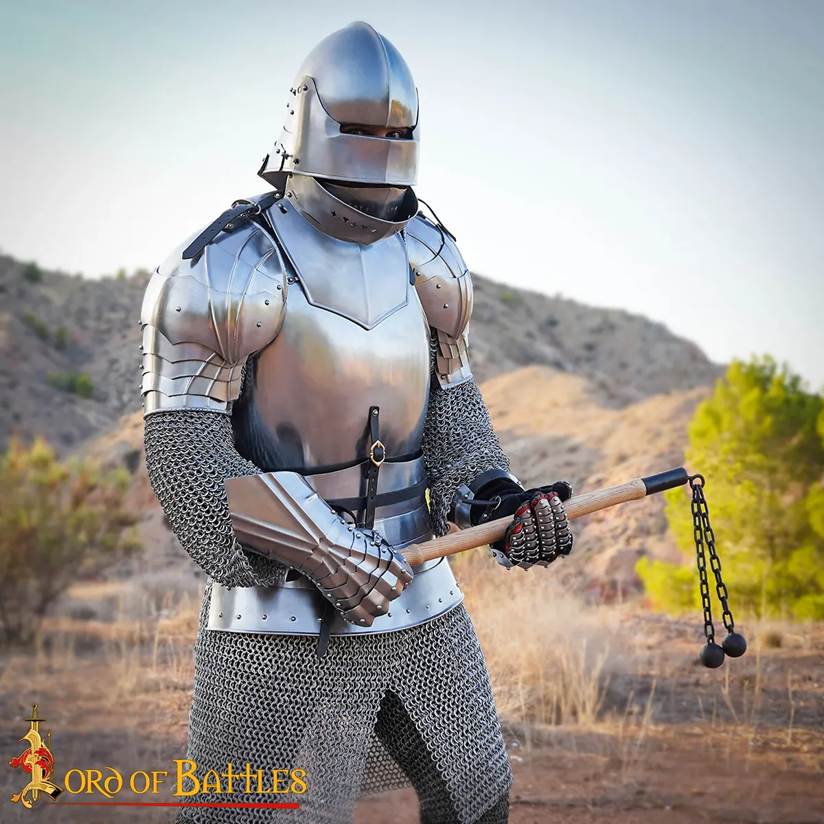 Weighing around 1.25 kg, this flail balances heft with control, making it as formidable to wield as it is striking to behold in a collection. Hand-forged and hand-carved, each piece bears its own subtle variations, ensuring no two are exactly alike, just as in the armouries of knights long past.