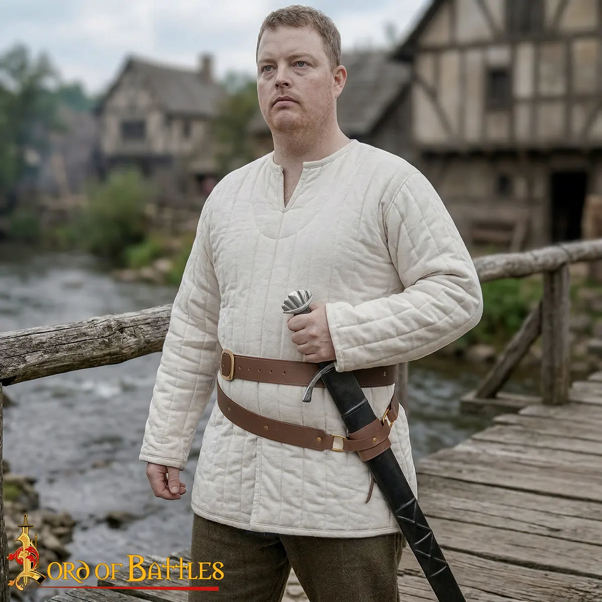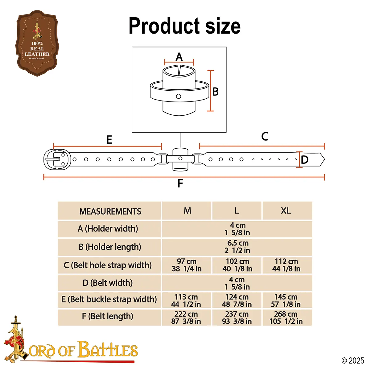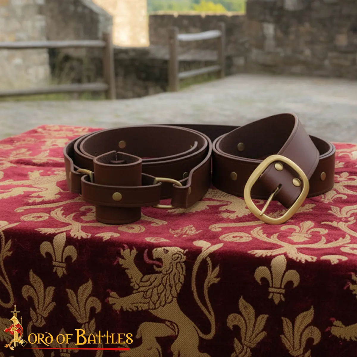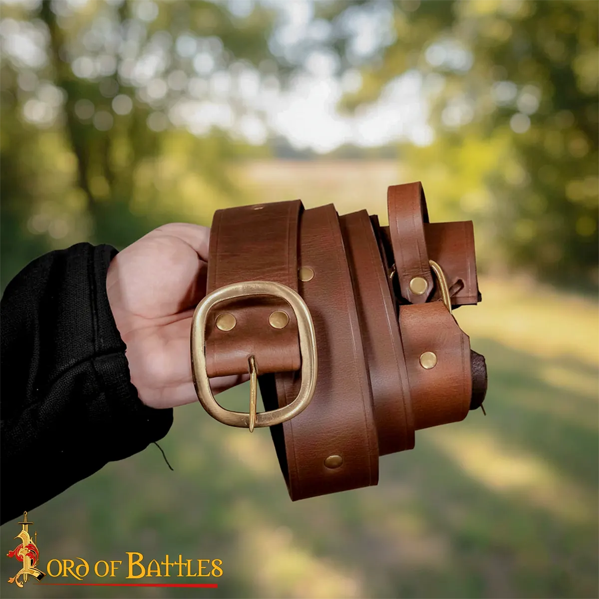 This double wrap sword belt has 4 cm width, suitable for various body types and layering over tunics, gambesons, or cloaks. The wrap-around design gives visual appeal and balance, so that your sword hangs naturally from the frog holder. Solid brass buckles and rivets reinforce the belt, for lasting strength.