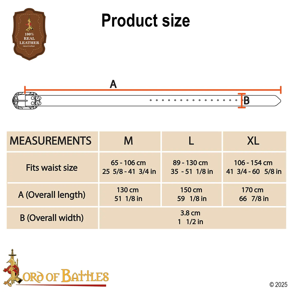 With a 4 cm width, this belt is striking as well as comfortable, wide enough to stand out and flexible for easy movement. It carries weight, substance, and soul, just like the heroes who wear it.