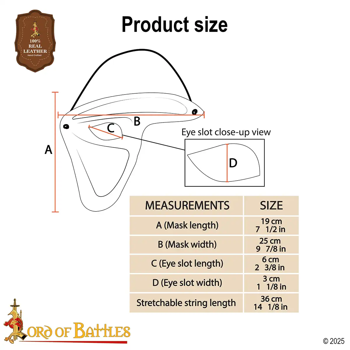 Add mystery and drama to your look with this Fantasy Opera Leather Villain Face Mask. Handcrafted from 2 mm genuine leather, it gives you a bold look while staying comfortable for long wear. The leather is shaped to fit the face well and create an expressive look.