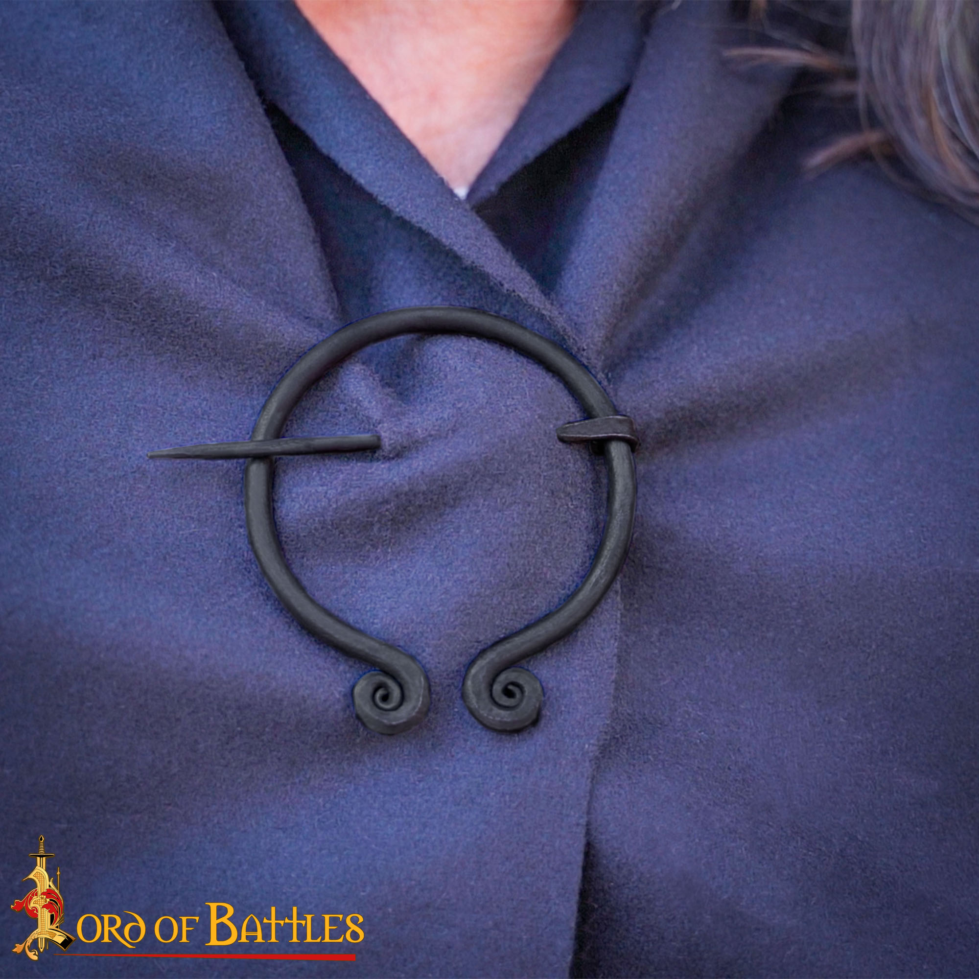 The design features a twisted iron ring and knotted terminals, echoing historical examples found across the British Isles and continental Europe. These brooches were more than accessories—they were essential tools for fastening heavy cloaks and woolen garments, particularly in colder climates. The extended pin pierces your fabric and rotates to rest in the open ring gap, locking the brooch into position.