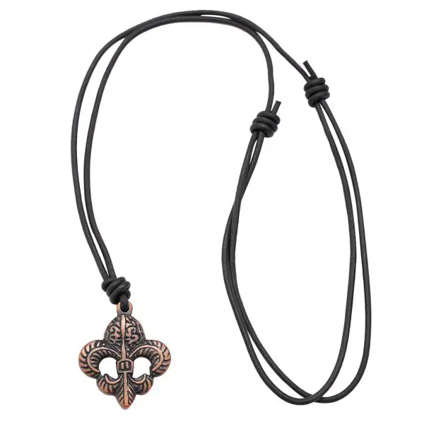 Fleur-de-Lis Pendant with Adjustable Leather Cord Antiqued Brass Accessory
