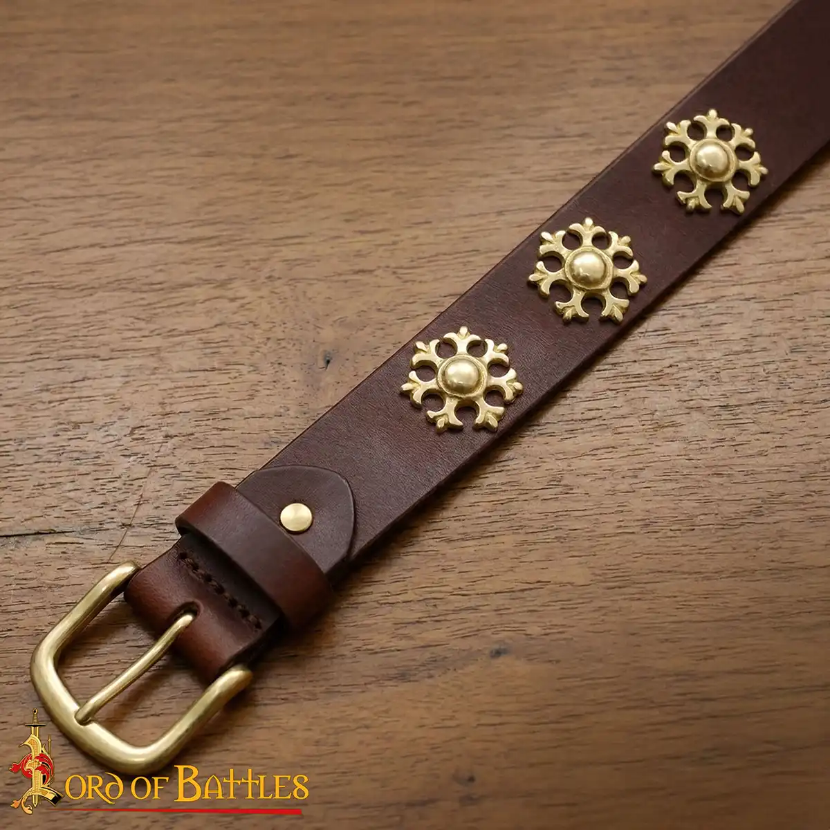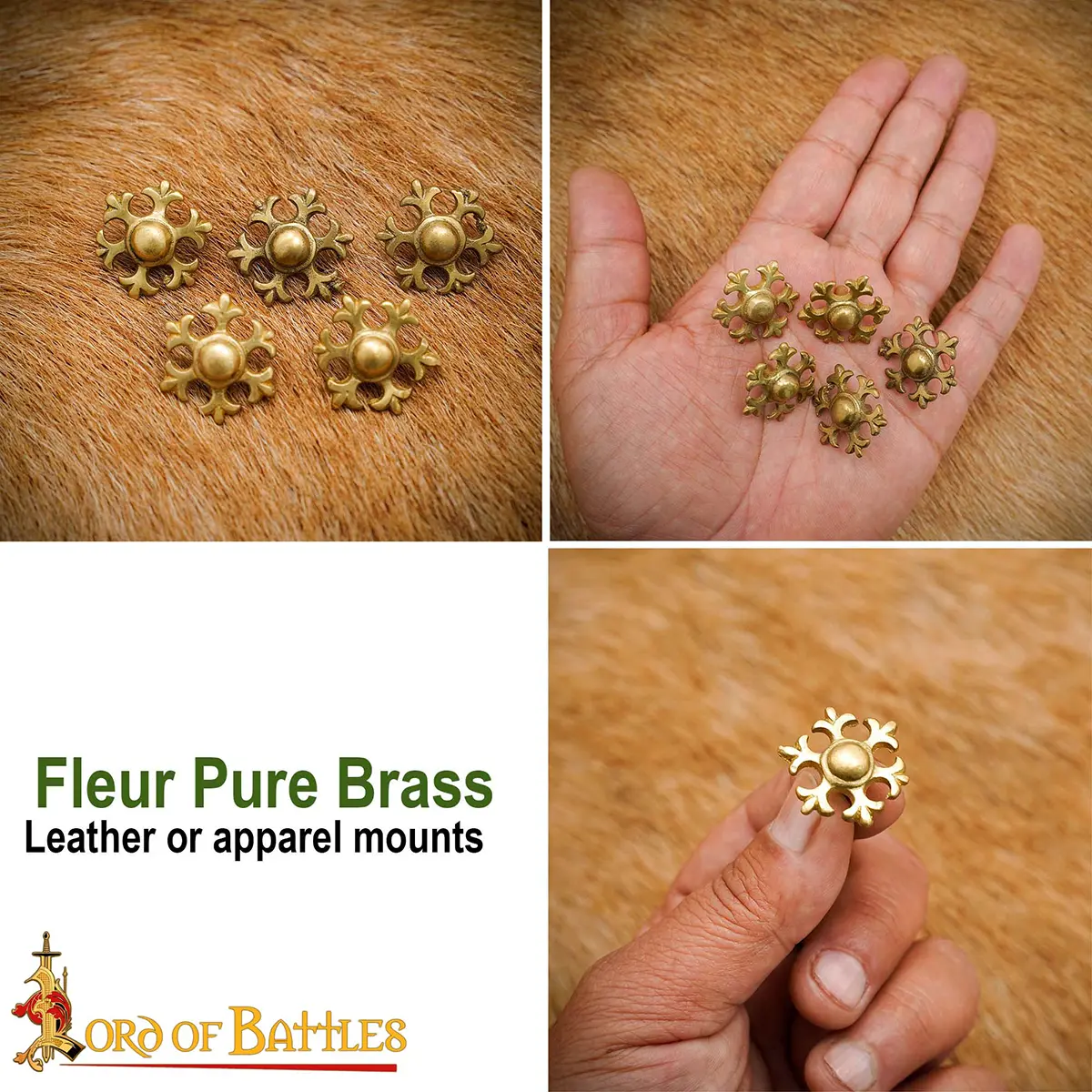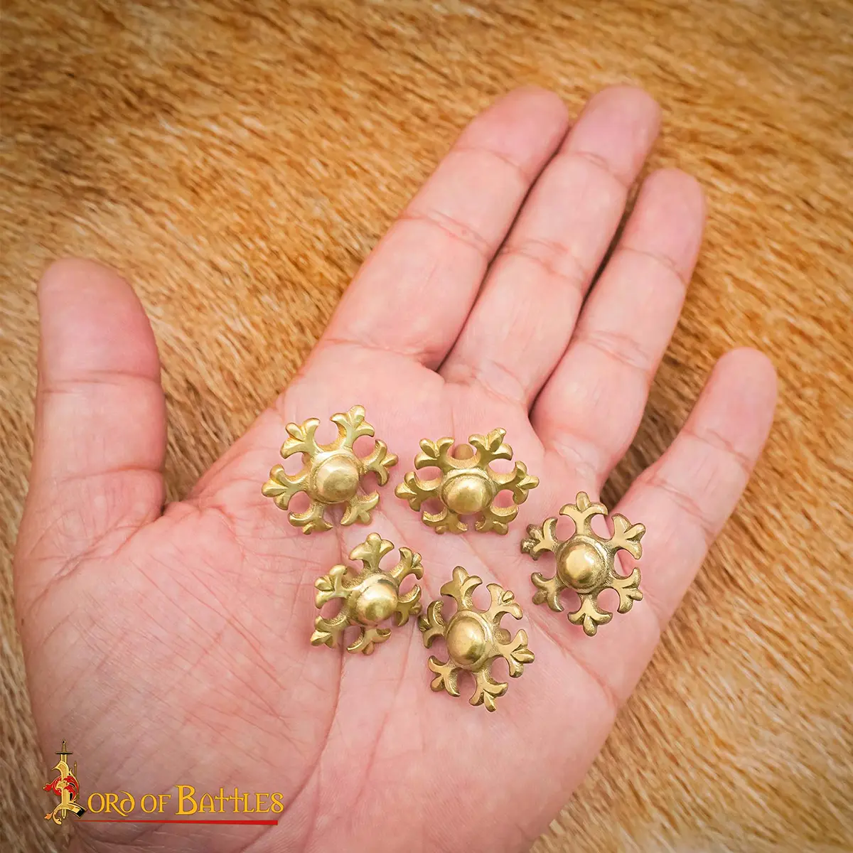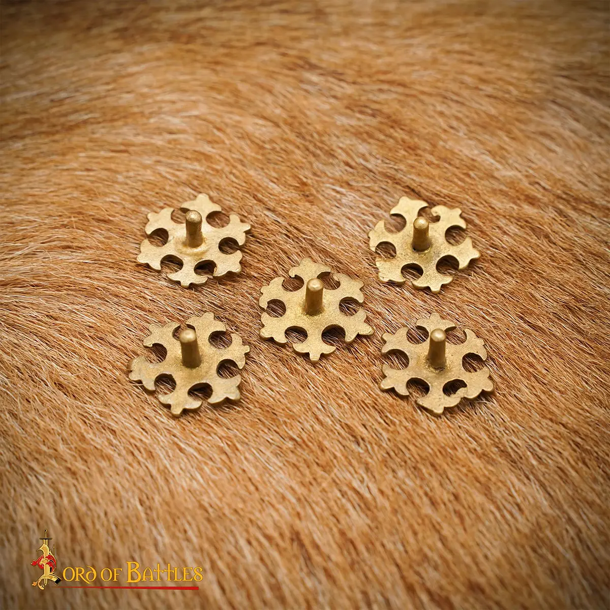 These brass leather mounts bring historical elegance to any leathercraft project. Whether used on belts, pouches, bags, or cloaks, they add a distinctive medieval touch with durability. The solid brass construction guarantees that each mount not only shines brilliantly but also withstands the rigors of reenactments, fairs, or everyday use.