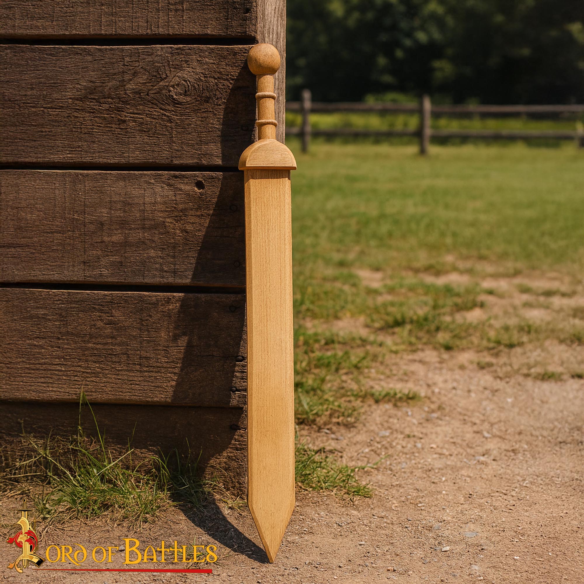 Every piece is unique, with natural differences in wood color and grain, adding character and authenticity. Whether for historical displays, theatre, martial arts, or themed events, this wooden gladius brings the spirit of Roman training to life.