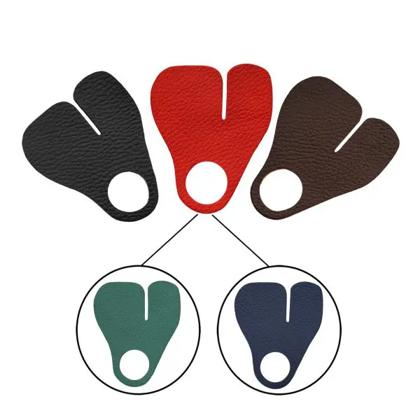 This set of three finger tabs includes two timeless colors, classic black and rich brown, perfect for matching with any archery gear you might own. As an added bonus, the third tab comes in a vibrant color of your choice—be it blue, red, green, or an additional black or brown—allowing you to express your personality while you pursue your passion. Our leather not only looks fantastic but is built to withstand the rigors of repeated use in the field, making these tabs a long-lasting investment in your archery arsenal.