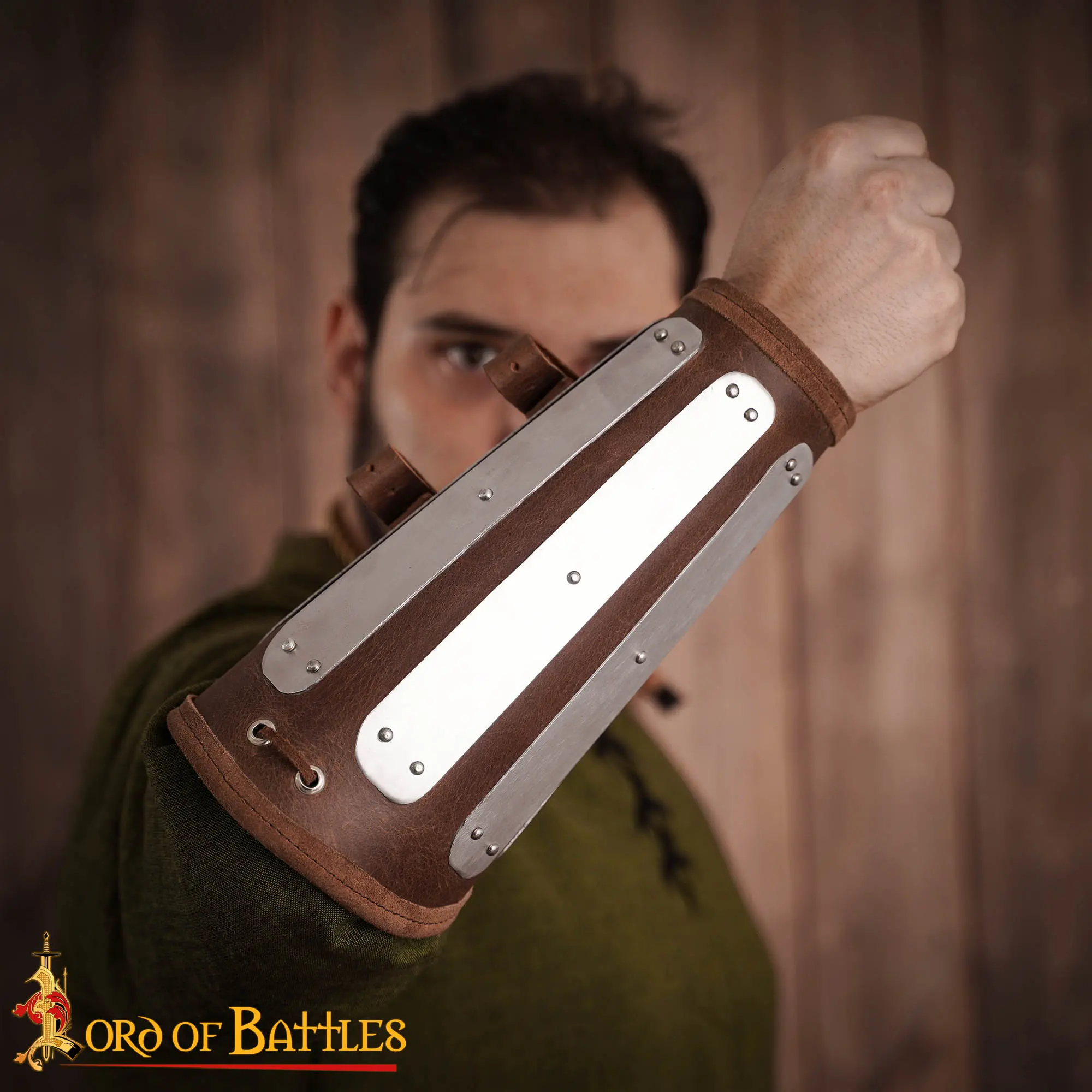 The steel splints are made from 16-gauge mild steel and riveted securely onto the leather. While offering solid protection and a classic medieval look, this material may show light patina over time—an expected result of true metal use and wear.