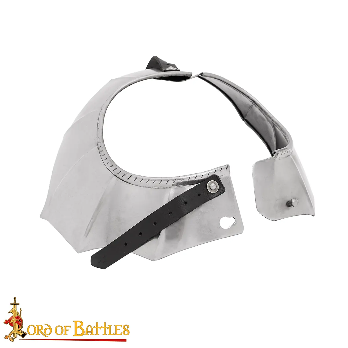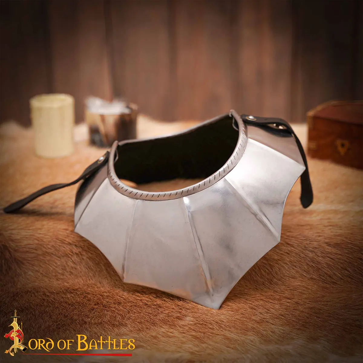 Discover the Gothic Knight Gorget, a piece that transcends mere armor to become a statement of elegance and strength. Crafted from durable 16 gauge mild steel, this gorget not only offers protection but also embodies the spirit of a valiant warrior. Its intricate fluting and roped design edges merge function and artistry, ensuring that every knightly ensemble becomes a masterpiece.