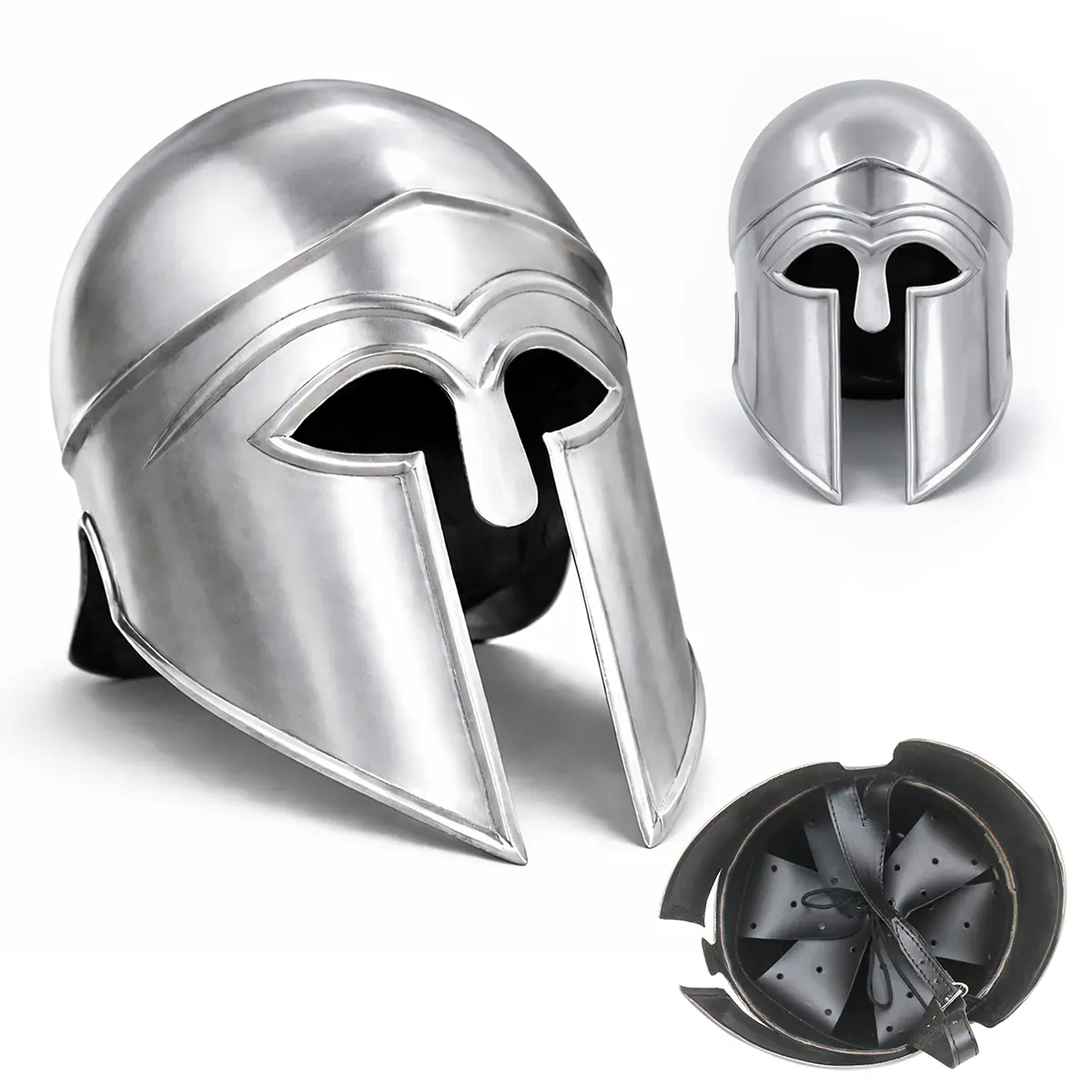 Handmade from durable 18 gauge mild steel, our Greek Corinthian Helmet is designed for both historical accuracy and comfort. Ideal for reenactors, collectors, and Spartans enthusiasts, this helmet is a perfect addition to any costume or décor.