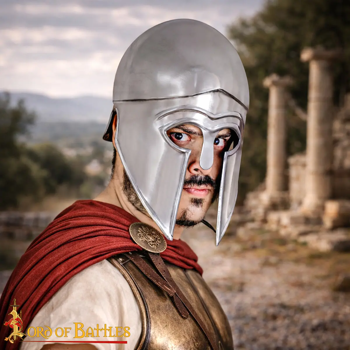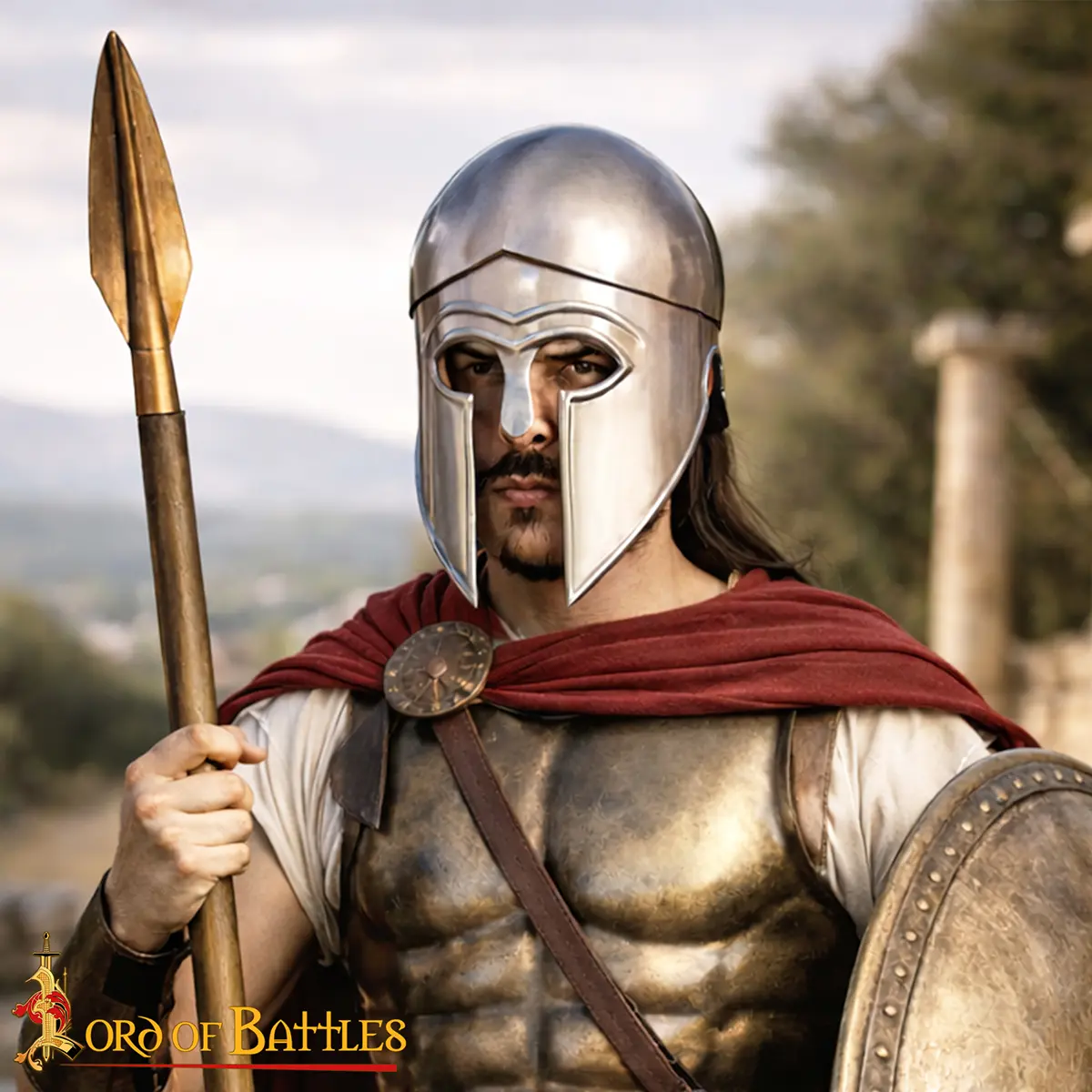 Inspired by the helmets worn by Greek hoplites during the Archaic and early Classical periods, this helmet was a symbol of the fierce warriors who protected the city-states. It was worn by famous leaders such as Pericles and remained a key part of Greek military attire.