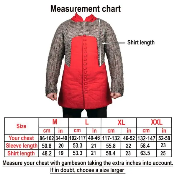 Understanding the importance of comfort, our half haubergeon comes in four distinct sizes: medium, large, extra-large, and double extra-large, ensuring a great fit for everyone. We encourage our customers to refer to our detailed size chart available with the product images to find the perfect size that enhances both comfort and protection, enhancing your experience whether you’re on stage for a reenactment or participating in a fair.