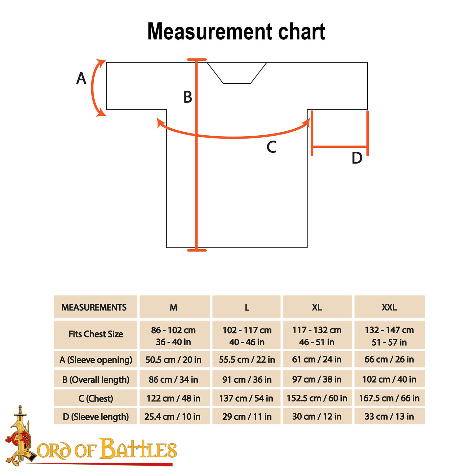 Available in four sizes—Medium (M), Large (L), Extra-Large (XL), and Double Extra-Large (XXL)—this shirt caters to a wide range of body types, so you can find your perfect fit effortlessly. Whether you’re preparing to lead your fellow reenactors into combat or just displaying your enthusiasm for medieval history at a gathering, you can trust that our product will help you to feel both empowered and protected.