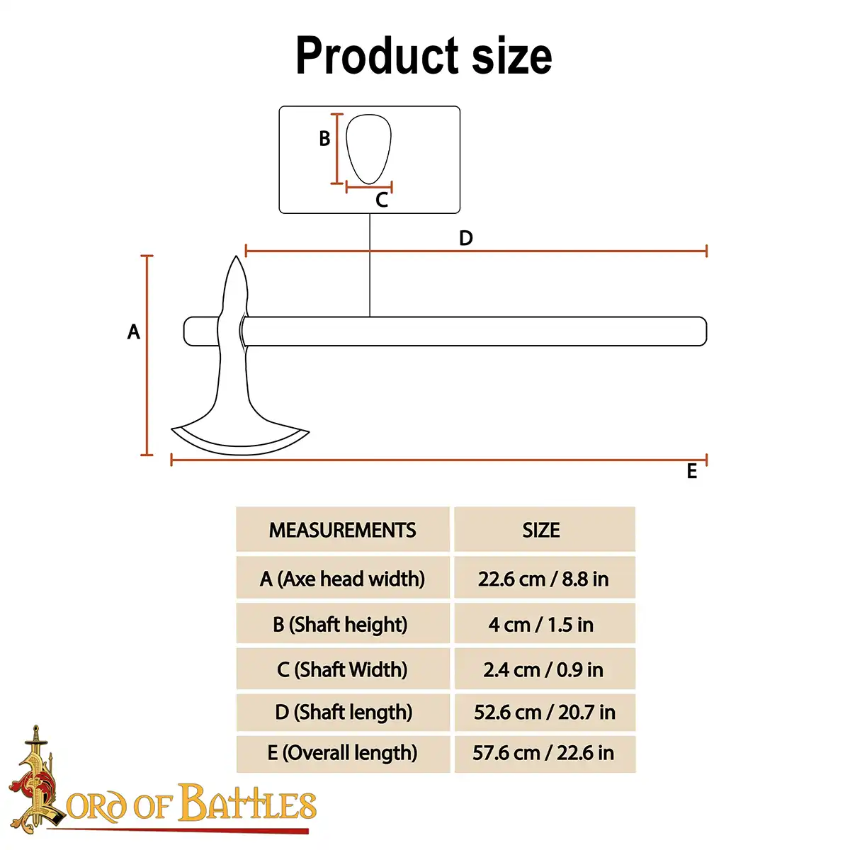 Every Hand Forged Viking Battle Axe is individually hand-forged and assembled, meaning subtle variations in wood grain, surface texture, and dimensions are to be expected.