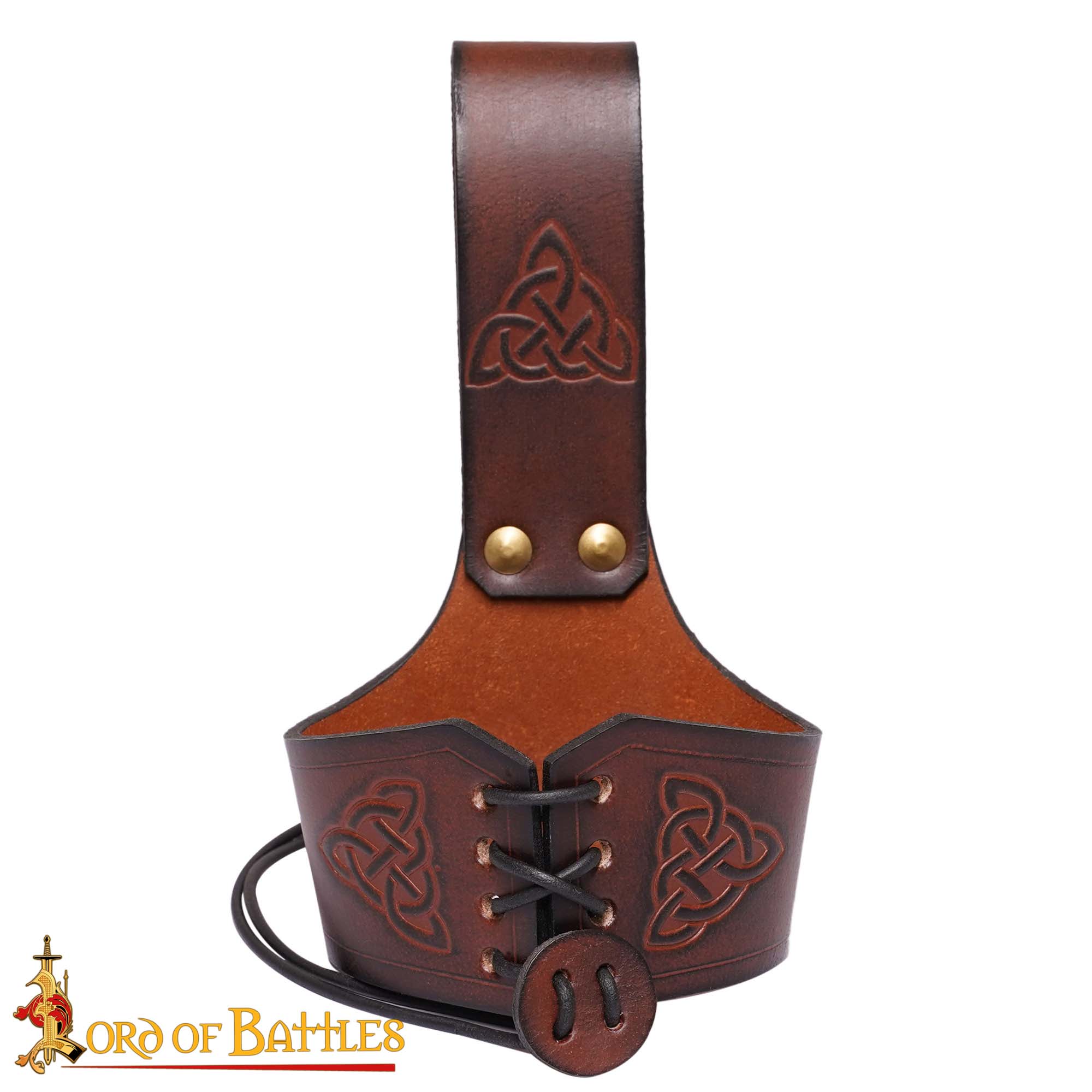 Crafted for Viking feasts, medieval festivals, and ceremonial gatherings, this premium Leather Drinking Horn Holder blends functionality with historical charm. Its body is made from durable, full-grain leather—built to support your drinking horn securely while offering a rich, authentic look. The surface is engraved with traditional Celtic knotwork, evoking the symbolism and craftsmanship of early medieval artisans.