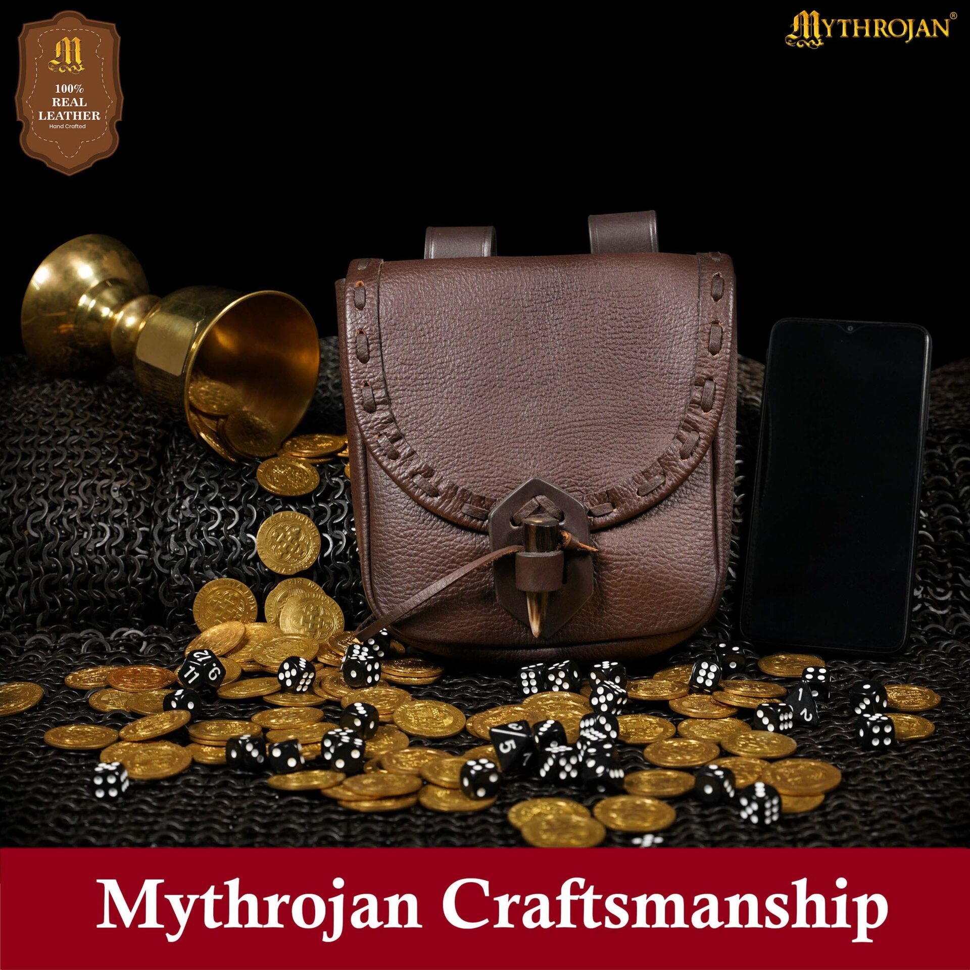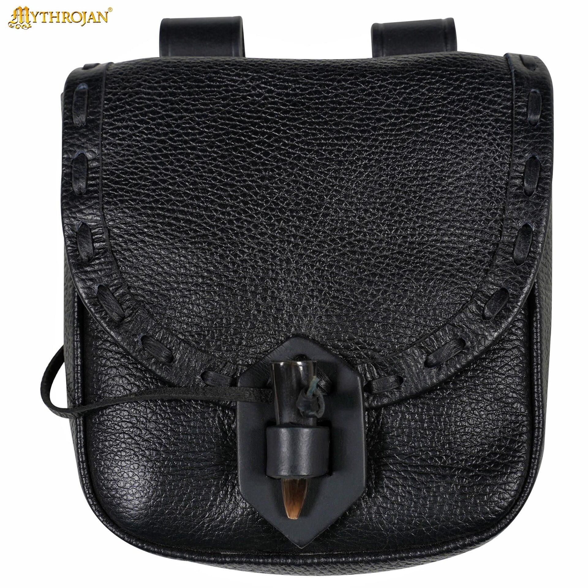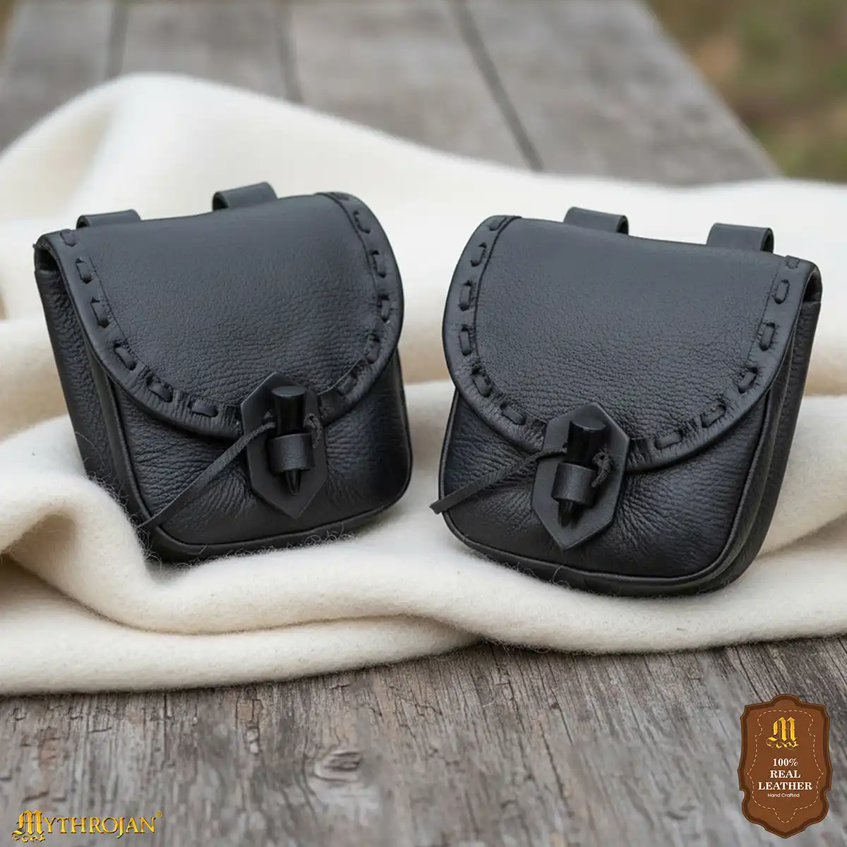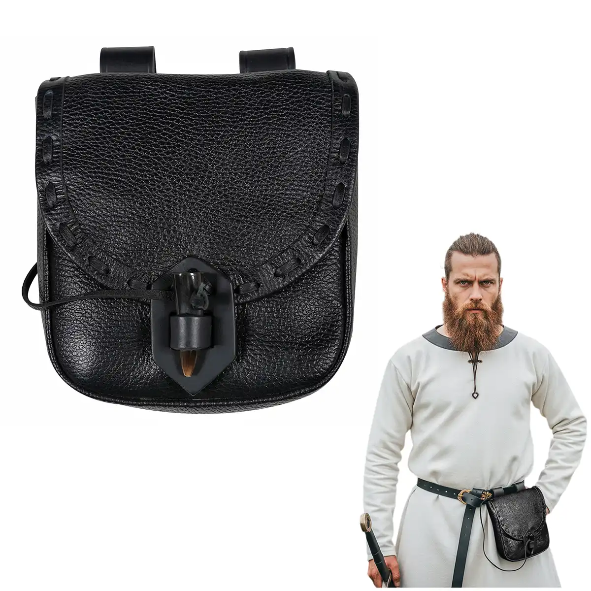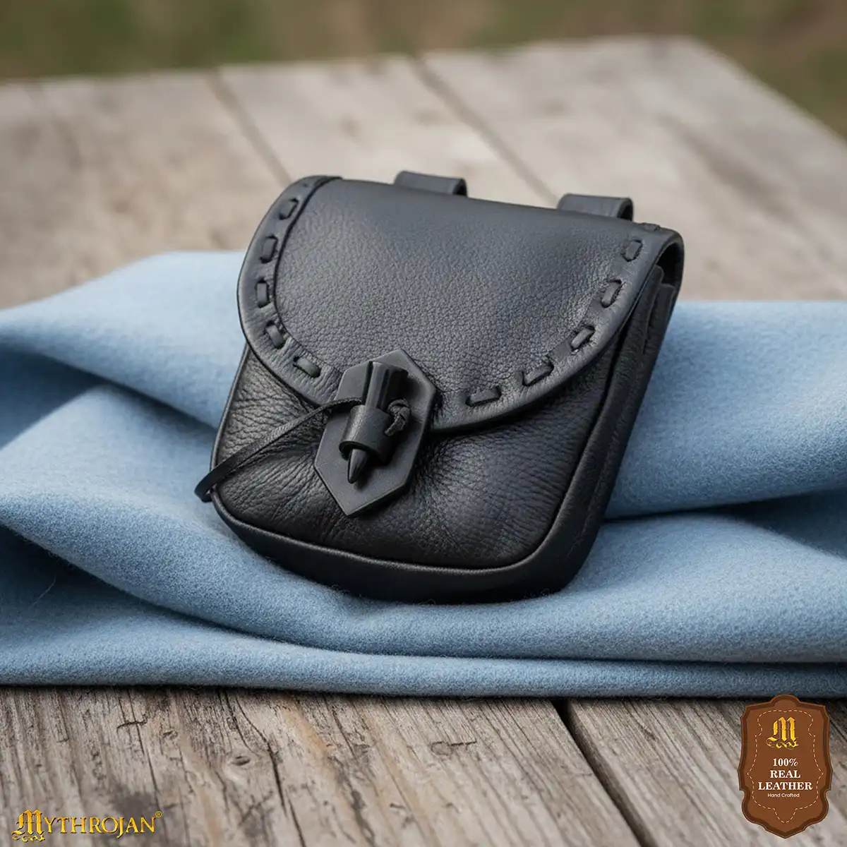 This Medieval Leather Belt Bag is made from genuine 2–2.2 mm thick leather and has hand-stitched edges for more durability. The traditional real ox horn toggle and loop closure, inspired by historical pouches of medieval merchants and travelers, keeps your items secure. The toggle is easy to use, simply slip it through the loop to secure the bag and lift it out when you need access.