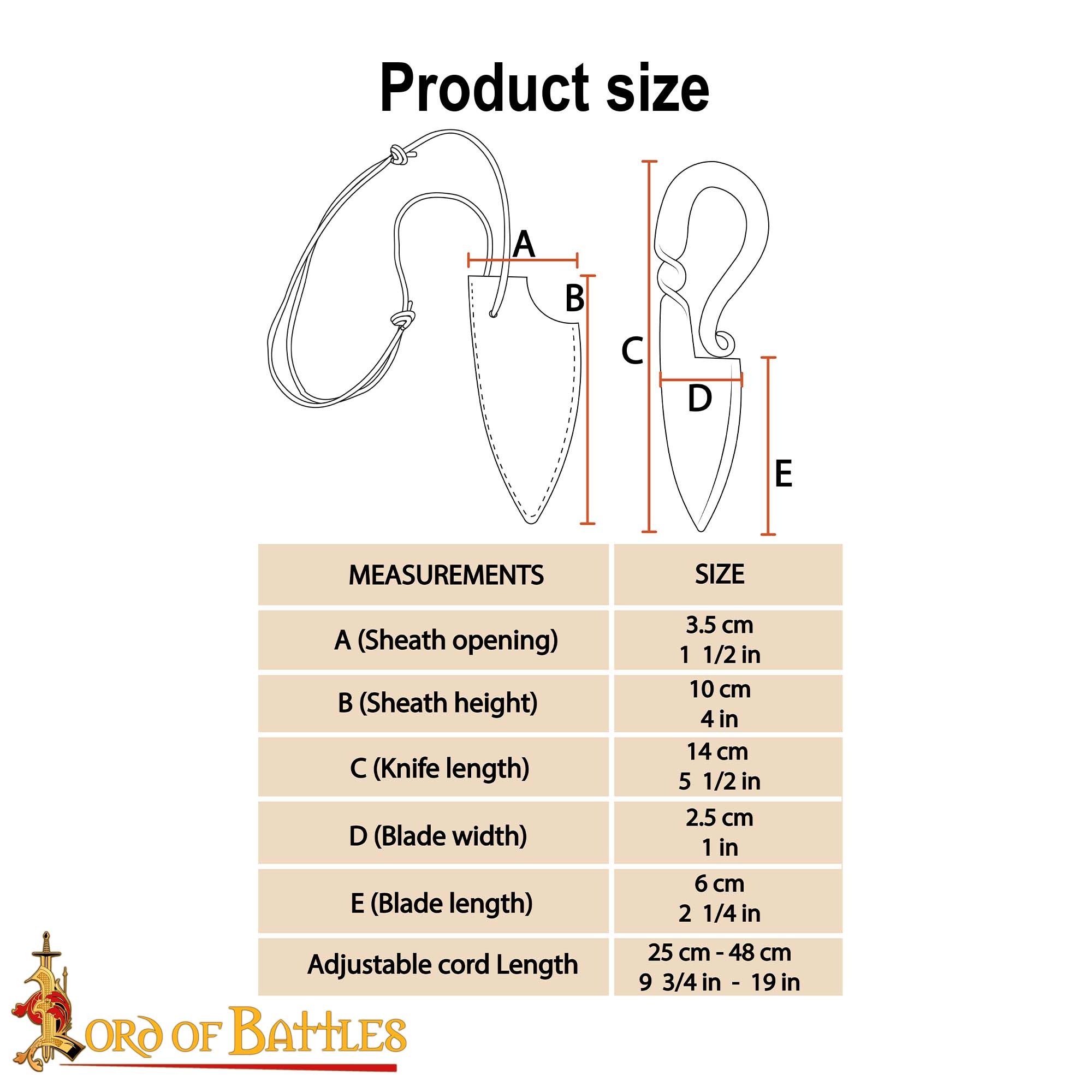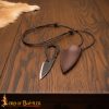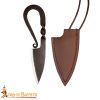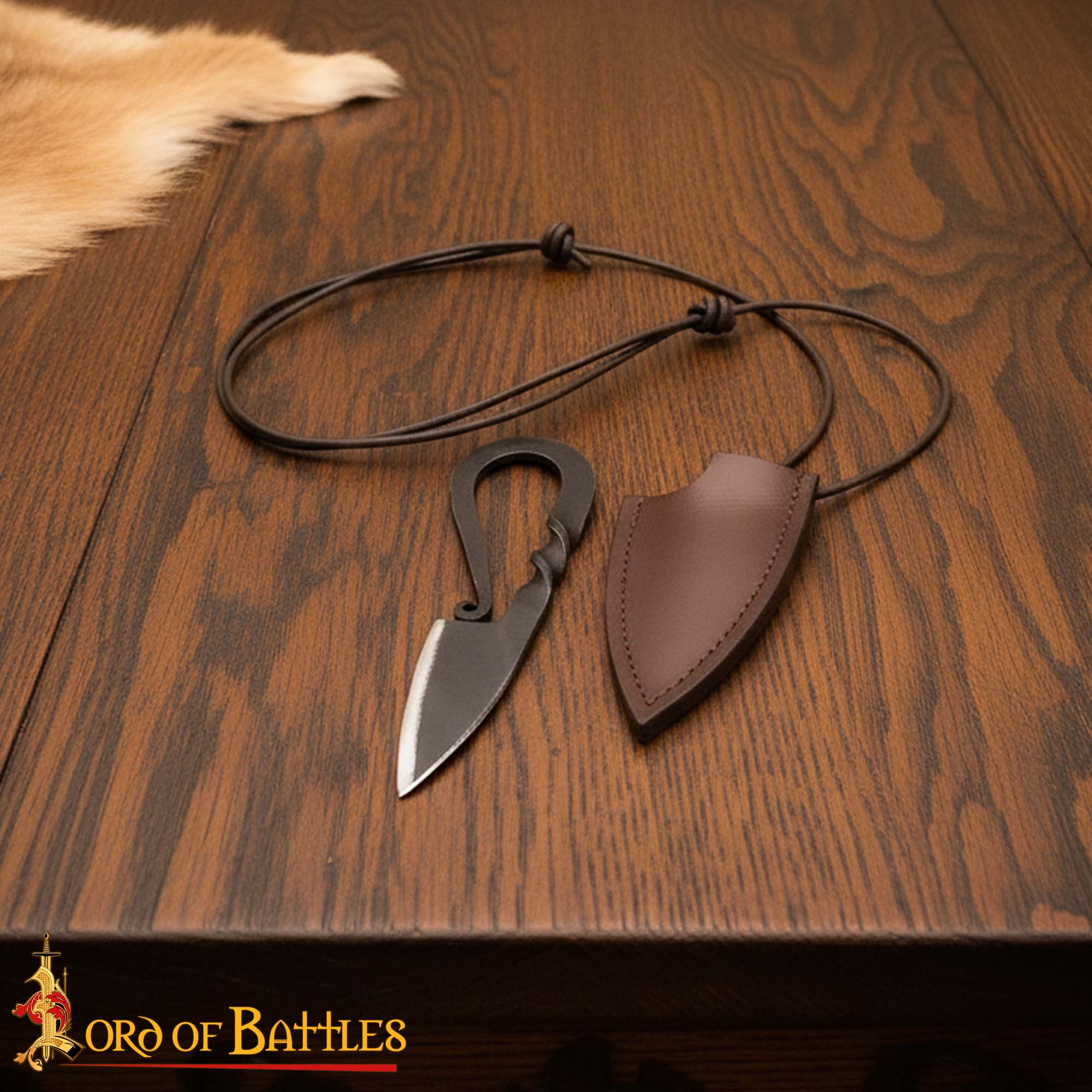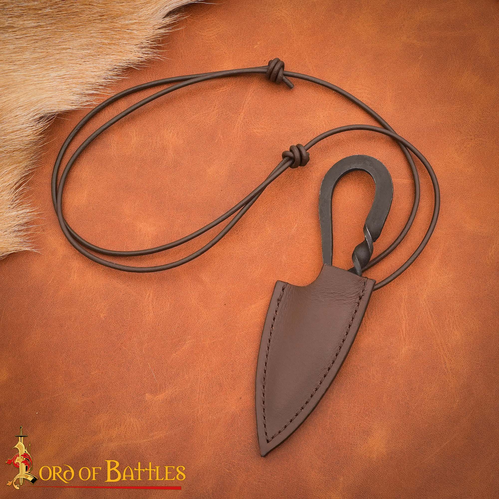 The knife is paired with a genuine leather sheath, crafted to protect the blade and add historical authenticity. The sheath features an adjustable leather cord, allowing it to be worn around the neck for both convenience and style—keeping your blade close at hand during adventures, gatherings, or LARP events.