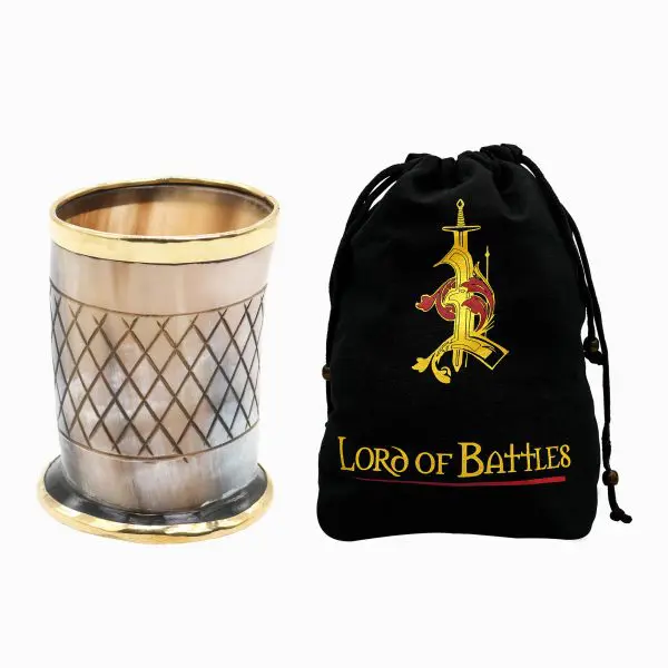 Included with your purchase is a stout cotton canvas bag, emphasizing our commitment to not just quality but also to the care of your horn products. This bag not only protects your shot glass but also makes it an excellent gift for yourself or fellow enthusiasts of medieval culture.